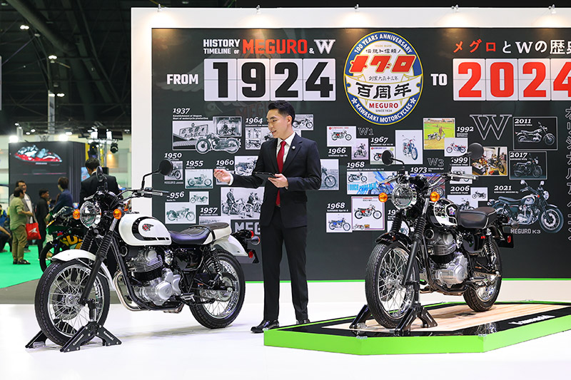 เปิดฉากด้วยรถจักรยานยนต์ที่มาสานต่อตำนาน MEGURO และ W Series 2 โมเดลใหม่สไตล์คลาสสิก ได้แก่ MEGURO S1 และ W230 พร้อมขุมพลังสูบเดี่ยว ครบครันด้วยออพชั่นรองรับการใช้งานและเต็มไปเอกลักษณ์การดีไซน์เฉพาะตัวในทุกๆมุมมอง โดยจะวางจำหน่ายในประเทศไทยช่วงไตรมาส 3 ของปีนี้
