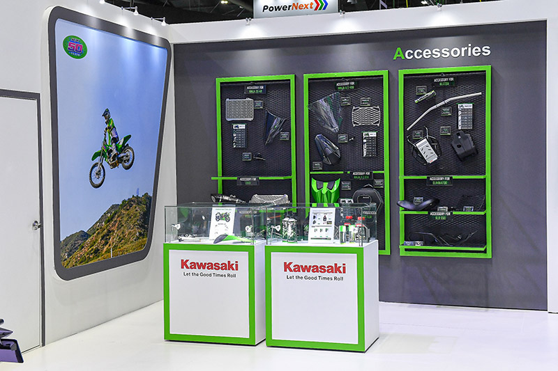 สำหรับบูธ Kawasaki ยังมีรถจักรยานยนต์รุ่นต่างๆที่วางจำหน่ายในประเทศไทยมาจัดแสดง ไม่ว่าจะเป็น Ninja ZX-6R, Ninja ZX-4R, Ninja 400, KLR650 Adventure (Non ABS),Eliminator SE
