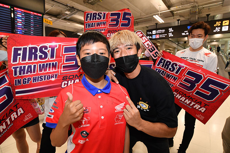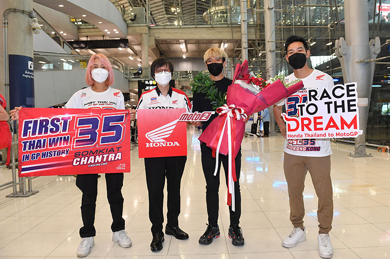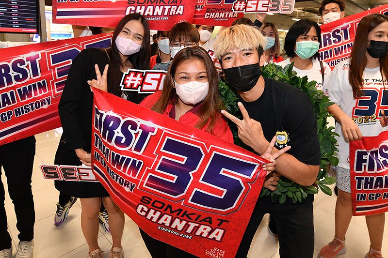 โดยในเช้าวันที่ 17 พฤษภาคม ที่ผ่านมา “ก้อง สมเกียรติ” ได้เดินทางกลับประเทศไทย เพื่อพักเก็บตัวก่อนเดินทางไปแข่งในสนามถัดไป ท่ามกลางแฟนคลับชาวไทยจำนวนมากที่มาร่วมกันต้อนรับ แสดงความยินดีกับ ฮีโร่ โมโตทู ผู้ปลุกกระแส “มอเตอร์สปอร์ตไทย” หลังยอดนักบิดไทยวัย 23 ปี สร้างปรากฏการณ์ด้วยการคว้า 3 โพเดี้ยมในศึกโมโตทูชิงแชมป์โลก จากผลงานสุดร้อนแรงในการแข่งขันจักรยานยนต์ทางเรียบชิงแชมป์โลก โมโตจีพี รุ่น โมโตทู ซึ่งผ่านไป 7 สนามแรกของปีนี้