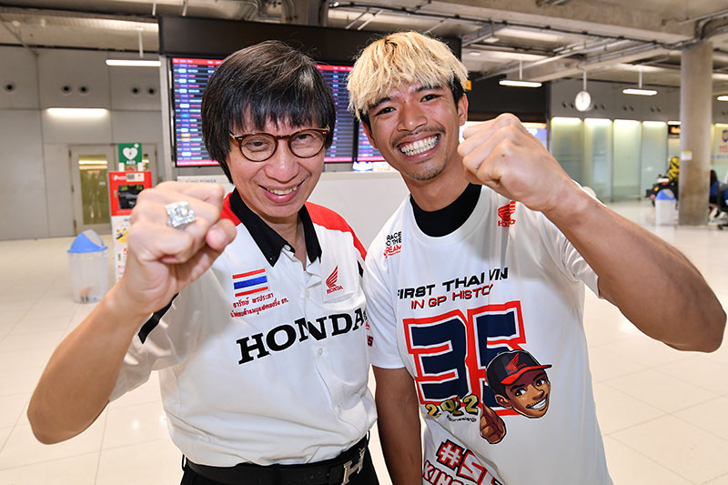 ดร.อารักษ์ พรประภา รองประธานกรรมการบริหาร บริษัท ไทยฮอนด้า แมนูแฟคเจอริ่ง จำกัด ผู้ผลักดันนักบิดไทยให้โลดแล่นในระดับโลกมาอย่างต่อเนื่อง กล่าวว่า “ก้อง-สมเกียรติ แสดงให้เห็นถึงศักยภาพ และการพัฒนาแบบก้าวกระโดด จากเป้าหมายที่จะผลักดันให้มีนักบิดไทยโลดแล่นใน โมโตจีพี ภายในปี 2025 เป็นไปตามโร้ดแม็ปของโครงการ ‘ฮอนด้า เรซ ทู เดอะ ดรีม’ ซึ่งเข้าใกล้ความจริงไปทุกขณะ เป็นการตอกย้ำว่าโครงการนี้จับต้องได้จริง และเป็นความสำเร็จที่เราจะสานต่อพัฒนาเด็กไทยไปสู่ระดับโลกได้อย่างแน่นอน” ดร.อารักษ์ กล่าว