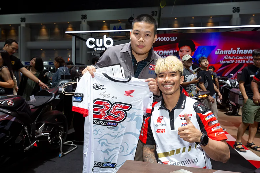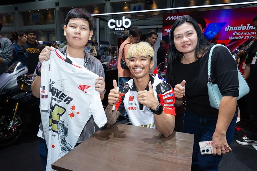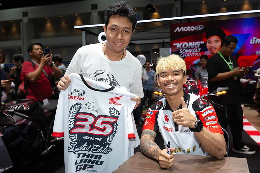 “ก้อง“ สมเกียรติ จันทรา ยอดนักบิดไทยจากโครงการ “ฮอนด้า เรซ ทู เดอะ ดรีม” ยิ้มแก้มปริต้อนรับ “แฟนมีต” ครั้งแรกในฐานะนักแข่งโมโตจีพี แฟนคลับล้นหลามแห่ให้กำลังใจพร้อมขอลายเซ็น เจ้าตัวเผยทีมงานแฮปปี้การทดสอบครั้งแรกที่ บาร์เซโลน่า พร้อมป้อนการบ้านช่วงปิดฤดูกาล ตั้งเป้าเรียนรู้มากที่สุด เพื่อเริ่มต้นฤดูกาลใหม่กับความท้าทายในคลาสสูงสุดของโลก ขอบคุณแฟนชาวไทยที่ผลักดันในทุกช่วงเวลา
