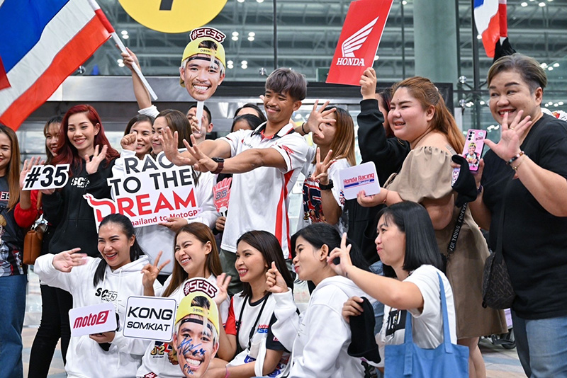 “ก้อง” สมเกียรติ จันทรา นักบิดไทยวัย 24 ปี เจ้าของแชมป์ “เวิลด์กรังด์ปรีซ์” คนแรกในประวัติศาสตร์ จากโครงการ “ฮอนด้า เรซ ทู เดอะ ดรีม” บินตรงสู่ประเทศสเปน เมื่อคืนวันเสาร์ที่ผ่านมา เพื่อทำภารกิจล่าแชมป์โมโตทูเต็มฤดูกาล 2023 ทั้งสิ้น 21 สนาม ในโมโตจีพี ศึกจักรยานยนต์ทางเรียบชิงแชมป์โลก รุ่นโมโตทู พร้อมเป้าหมายที่สูงขึ้นด้วยการจบในอันดับท็อป 5 ของโลก หวังสร้างชื่อเสียงให้ประเทศชาติ และตอบแทนกำลังใจจากแฟนชาวไทยที่ให้การสนับสนุน โดยมี ดร.อารักษ์ พรประภา รองประธานกรรมการบริหาร พร้อมด้วยคณะผู้บริหาร บริษัท ไทยฮอนด้า จํากัด รวมถึงแฟนชาวไทยที่ไปร่วมให้กำลังใจถึงสนามบินสุวรรณภูมิอย่างคับคั่ง