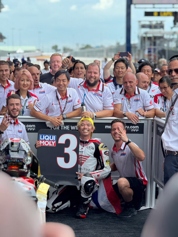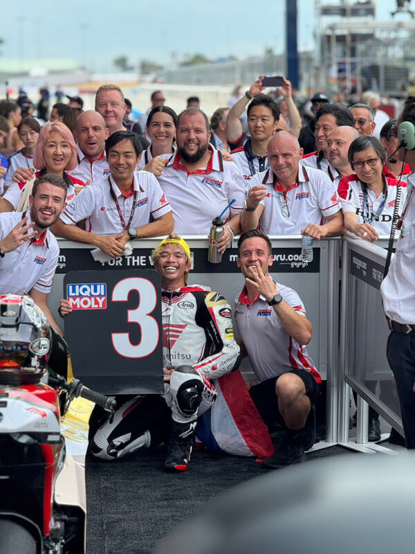 “ก้อง” สมเกียรติ จันทรา ยอดนักบิดไทยจากโครงการ “ฮอนด้า เรซ ทู เดอะ ดรีม” ทำสำเร็จ! ทะยานคว้าโพเดียมโฮมเรซต่อหน้าแฟนความเร็วชาวไทยนับแสนที่ สนามช้าง อินเตอร์เนชั่นแนล เซอร์กิต จ.บุรีรัมย์ หลังบิดคว้าอันดับ 3 ในศึกโมโตทู เวิลด์ แชมเปี้ยนชิพ 2023 สนาม 17 รายการ โออาร์ ไทยแลนด์ กรังด์ปรีซ์ เมื่อวันอาทิตย์ที่ผ่านมา