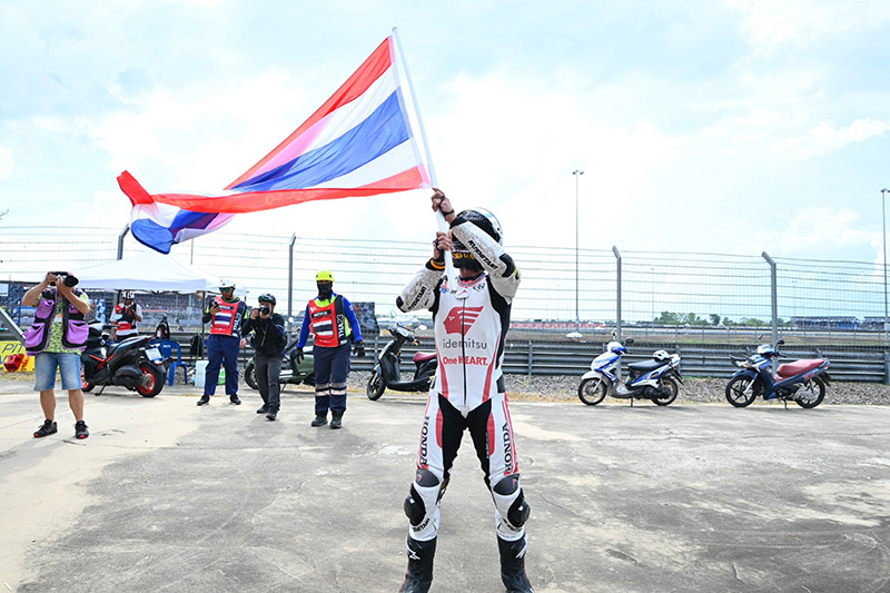 โดย สมเกียรติ ทำสถิติ เป็นนักบิดไทยคนแรกในประวัติศาสตร์ที่คว้าโพเดียมใน “โฮม กรังด์ปรีซ์” สำหรับการแข่งขัน โมโตทู
