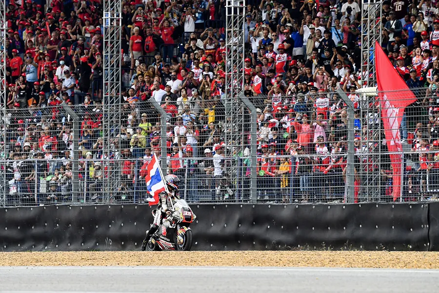ผลงานสุดยอดเยี่ยมของ “ก้อง-สมเกียรติ” ยอดนักบิดขวัญใจชาวไทย เจ้าของหมายเลข 35 จาก อิเดมิตสึ ฮอนด้า ทีม เอเชีย โชว์ฟอร์มฝืนเจ็บท่ามกลางสายฝน ส่งท้ายการแข่งขันในรุ่น โมโตทู ครั้งสุดท้ายของเขาในบ้านเกิด อย่างสมเกียรติกับการขยับขึ้นไปสู่รุ่นใหญ่ที่สุดอย่าง โมโตจีพี ในฤดูกาลหน้า ซึ่งประเทศไทยได้รับการยืนยันเป็นเจ้าภาพจัดการแข่งขันสนามแรกของฤดูกาล โดยจะเป็นการเปิดตัวครั้งแรกใน “พรีเมียร์คลาส” ต่อหน้าแฟนชาวไทยเช่นกัน
