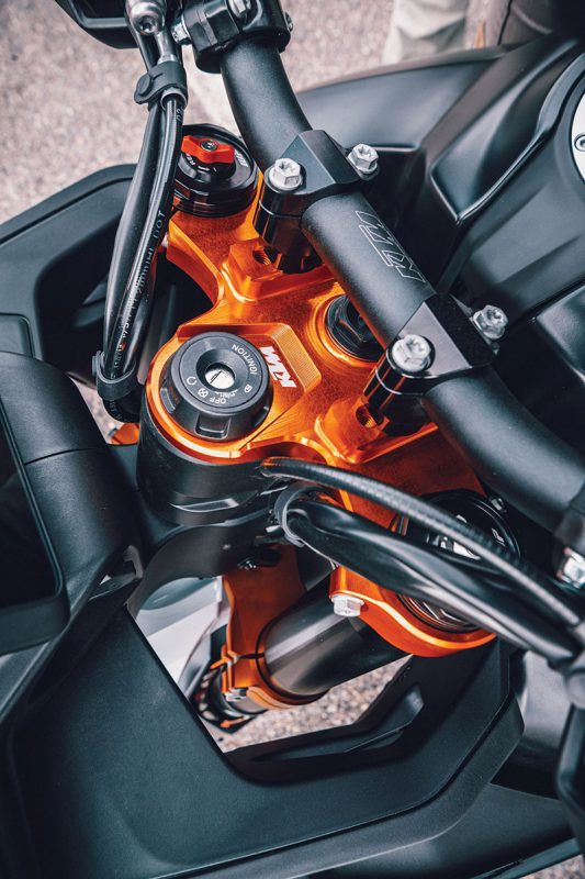 เครื่องยนต์ LC8c บล็อกล่าสุดของ KTM นั้นผ่านการพัฒนาให้ลดน้ำหนักของเครื่องยนต์ลงไปได้กว่า 20% ทั้งยังเพิ่มความแรง ด้วยแรงม้าสูงสุด 105 แรงม้า ที่ 8,000 รอบ แรงบิดสูงสุด 100 นิวตันเมตรที่ 6,500 รอบ.. จากที่เคยสัมผัสสมรรถนะของเครื่องบล็อกนี้ในโมเดล 890 Duke นั้น บอกเลยว่า “ดีดตึงมือสุดๆ” สังเกตได้ว่าทั้งแรงม้าและแรงบิดวิ่งมาเข้ามือเราแบบรวดเร็วมากๆ