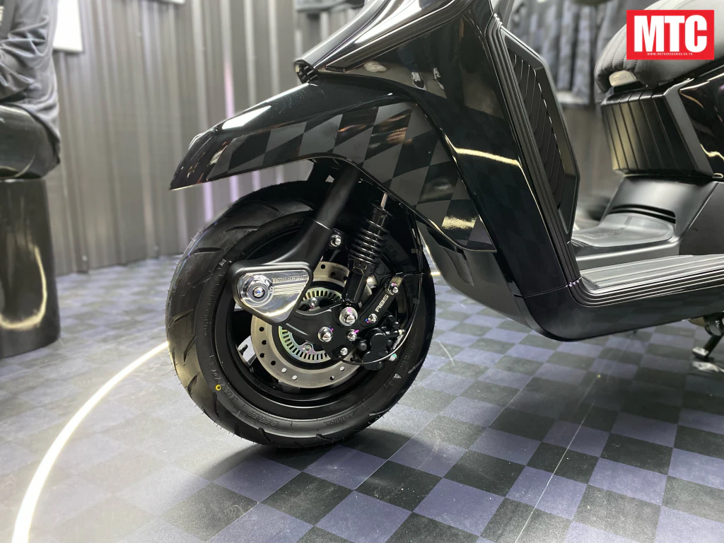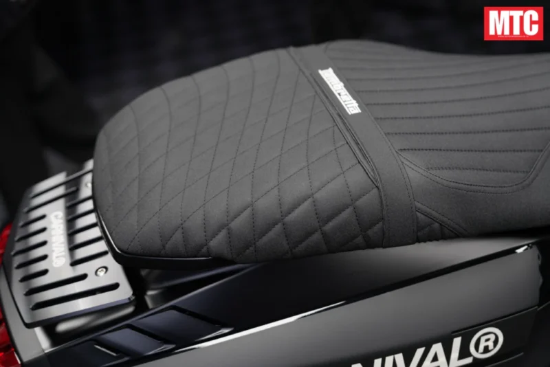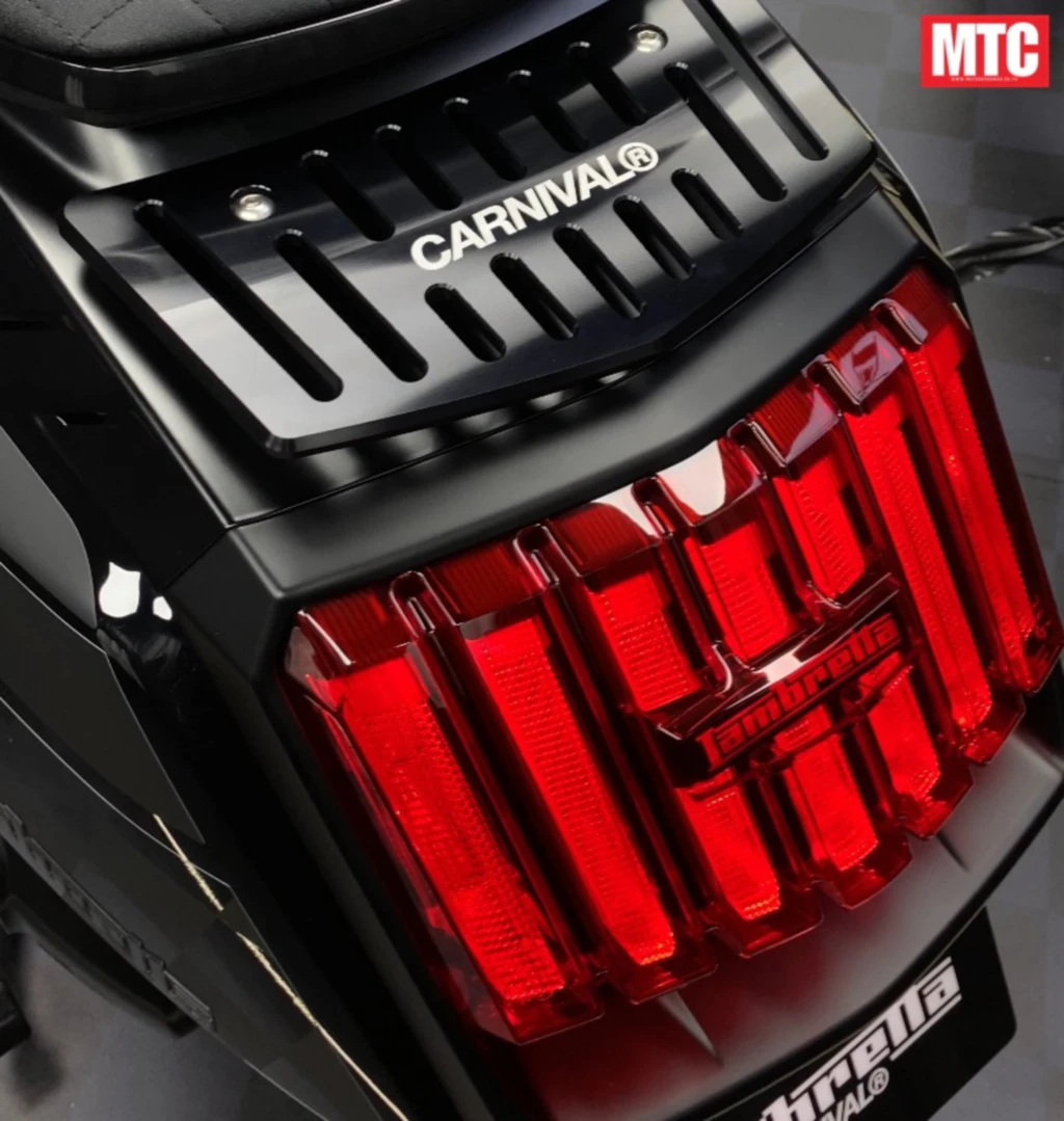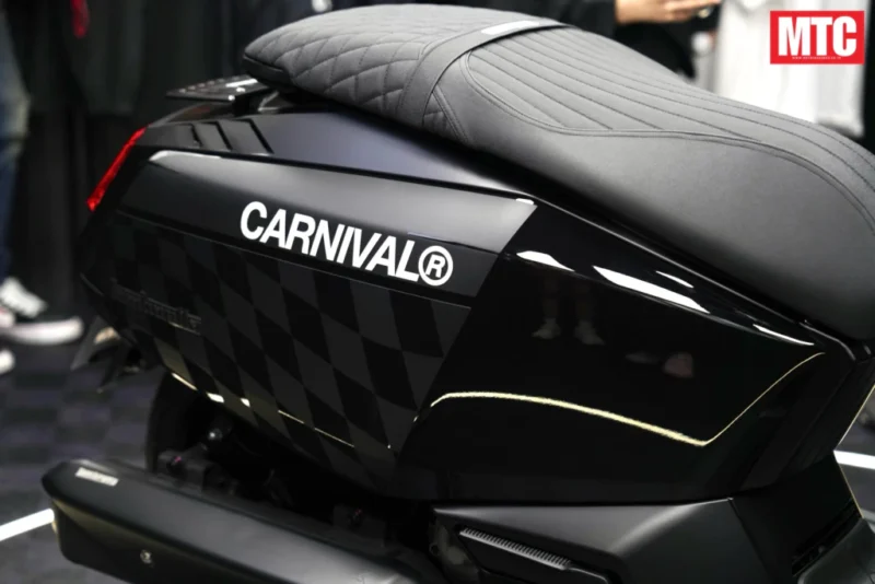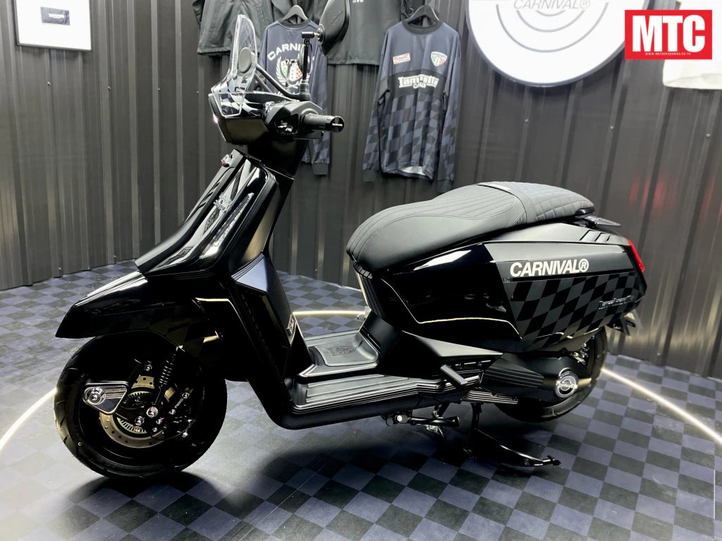 การใช้ลายตารางหมากรุกแบบ Black on Black ด้วยความพิเศษของสีดำ แบบสีดำเงาและสีดำด้าน (Glossy & Matte Black) เพิ่มความลึกลับและลุ่มลึก พร้อมดีไซน์คัสตอมของชุดแต่ง ตะแกรงท้าย CARNIVAL เบาะนั่ง และ Shield ด้านหน้าลาย Checkerboard สะท้อนความเป็นสตรีทแฟชั่นอย่างแท้จริงในแบบฉบับของคาร์นิวาล สีดำสุดเข้มที่ใช้ ทำให้รถรุ่นนี้โดดเด่นไม่เหมือนใคร ทั้งยังคงเอกลักษณ์ของแลมเบรตต้าไว้อย่างลงตัว