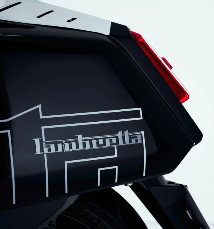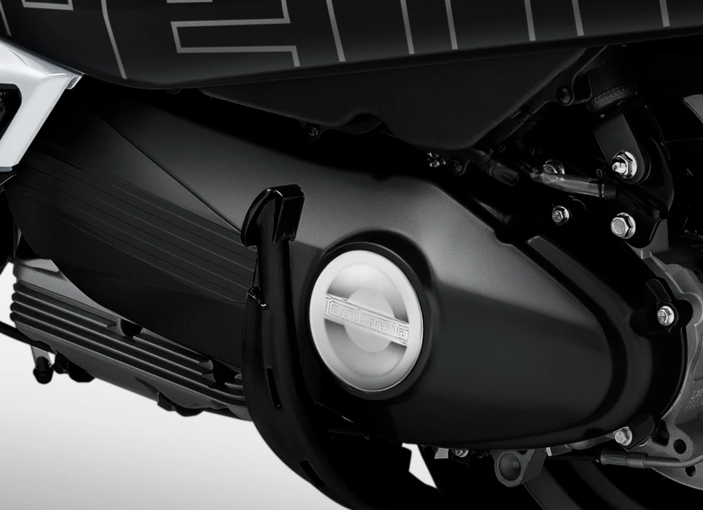 ตัวรถโดดเด่นที่ ฝาข้างตัวถังเหล็กมาพร้อมลายเส้นโลโก้แลมเบรตต้าที่พาดจากบังโคลนหน้าจรดฝาข้างหลัง สะท้อนการเชื่อมโยงเรื่องราวอันทรงคุณค่าที่สืบทอดจากอดีตสู่ปัจจุบันของตำนานสกู๊ตเตอร์จากสายเลือดอิตาลี