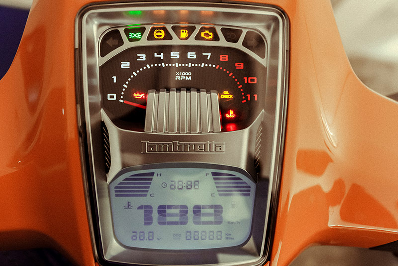 นอกจากนั้นยังมีหน้าจอแบบไฮบริด อนาล็อก+ดิจิทัลที่ดูเก๋ดี รวมถึงระบบไฟส่องสว่าง Full LED โคมไฟหน้า 6 เหลี่ยมเอกลักษณ์ของแลมเบรตต้า ไฟท้ายก็โดดเด่นสุดด้วยดีไซน์ในรูปทรงคริสตัล 7 แท่ง เพิ่มเลเยอร์ในการซ้อนโคม ด้านนอกอีกชั้น พร้อม IFS (Integrate-Function Signals) build-in ชุดไฟสัญญาณอยู่ภายใต้โคมไฟท้ายเดียวกันอย่างลงตัว