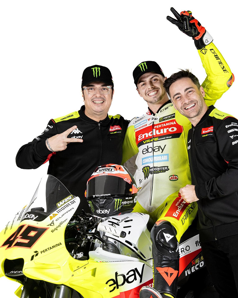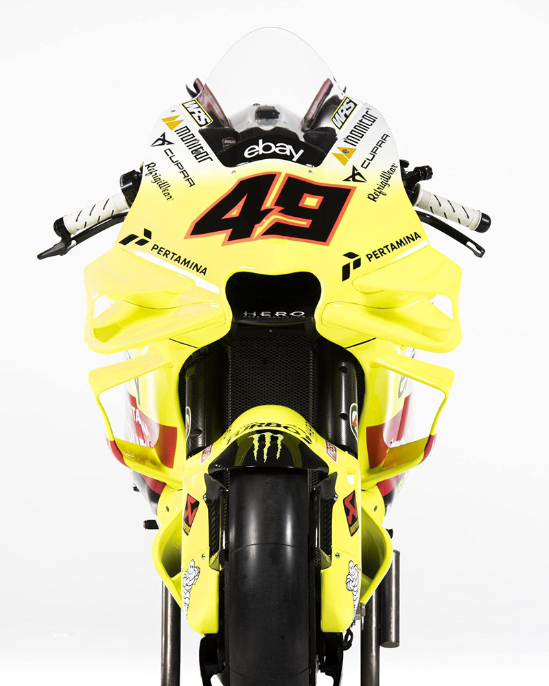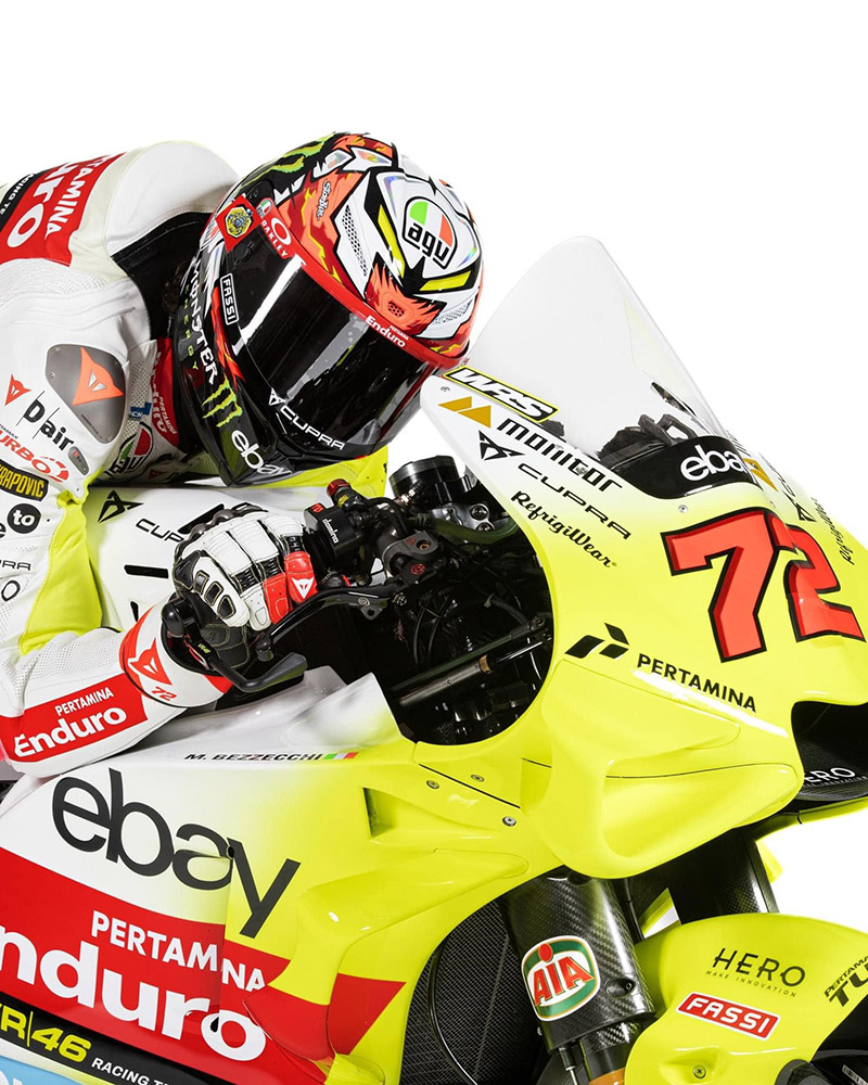 เปิดตัวหล่อๆมาในโทน ValeYellow (อ้างอิงสีฟลูออเรสเซนต์)สำหรับทีม Pertamina VR46 Racing Team 2024 ที่เราต่างก็รู้กันดีว่า “ตำนาน” อย่าง Valentino Rossi เป็นผู้ผลักและดันทั้งเบื้องหน้า-เบื้องหลัง โดยในฤดูกาลนี้ VR46 Racing Team มีการเปลี่ยนแปลงที่สำคัญ ทั้งการได้สปอนเซอร์ใหม่อย่าง Pertamina และได้ Fabio Di Giannantonio ขยับจาก Gresini Racing เข้ามาแทนที่ Luca Marini น้องชายของเดอะด็อคเตอร์ซึ่งอำลาทีมไปตามหาความท้าทายที่ Repsol Honda …สรุป Pertamina VR46 Racing Team ปีนี้ก็ใช้รถแข่ง Ducati Desmosedici gp23 กับนักบิด #72 Marco Bezzecchi และ #49 Fabio Di Giannantonio