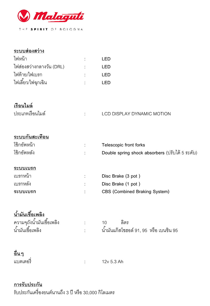 แม้จะเข้ามาทำตลาดในบ้านเราได้ไม่นาน แต่ด้วยกระแสตอบรับที่ดี ของรถรุ่น MADISON 150 ก็ส่งให้ แบรนด์ MALAGUTIมีตัวเลขยอดจดทะเบียนรถมอเตอร์ไซค์ในประเทศไทย ขึ้นมาติดอันดับTOP10ได้ภายในระยะเวลาอันรวดเร็ว