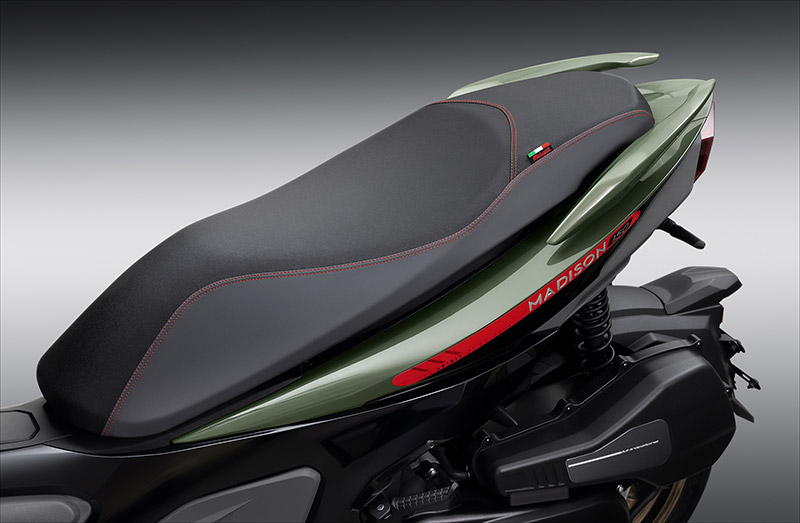 ผสานกับการออกแบบที่ให้ความโฉบเฉี่ยวของเส้นสายงานดีไซน์บนตัวรถถ่ายทอด DNA อิตาเลียนดีไซน์ มาไว้ในNew MADISON 150 คันนี้ได้อย่างลงตัวและยังมาพร้อมกับเครื่องยนต์ที่สมูท สไตล์อิตาเลียนพิกัด 150