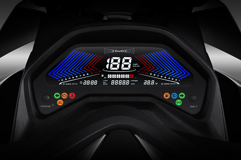 ซีซี 4 จังหวะ 4 วาล์ว เทคโนโลยีหัวฉีด (Bosch EFI) พร้อมระบบระบายความร้อนด้วยนํ้า (Liquid cool) กับโดดเด่นด้วยดีไซน์ไฟหน้าและไฟท้าย ในมิติล้ำสมัยเทคโนโลยี FULL LED หน้าจอเรือนไมล์แบบ LCD DISPLAY DYNAMIC MOTION ที่มาเติมสีสันให้ชีวิตตั้งแต่เริ่มบิดสตาร์ท พร้อมความพรีเมียมที่มาในดีไซน์ของรีโมทกุญแจ กับประโยชน์ด้านความปลอดภัย ที่เสริมการปลดล็อคอีกขั้นก่อนบิดสตาร์ทออกตัวเสริมความมั่นใจในทุกการเบรก ด้วยดิสก์เบรกหน้า-หลัง พร้อมระบบเบรกแบบ CBSถังน้ำมันขนาดใหญ่ จุได้ถึง 10 ลิตร ตอบโจทย์ด้านการใช้งาน และให้ความสะดวกสบายกับวิถีชีวิตยุคใหม่ ด้วยฟังก์ชั่นUSB CHARGING SOCKET สำหรับชาร์จอุปกรณ์สื่อสาร