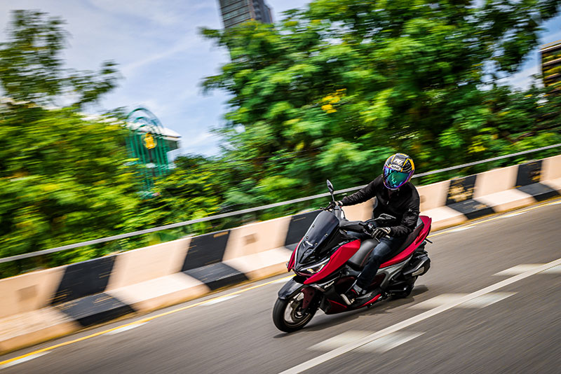 ช่วงแฮนด์ก็กว้างกำลังดี 760 มม. เยื้องมาด้านหลังเล็กน้อย จึงได้ท่านั่งที่สามารถเอนหลังได้ แถมยังควบคุมรถในหลายสถานการณ์ได้อย่างดี… ส่วนตัวที่ชอบที่สุดคือ จังหวะวิ่งฝ่ารถติดนี่แหละ เป็นโซฟาที่ “พริ้วสุดๆ”