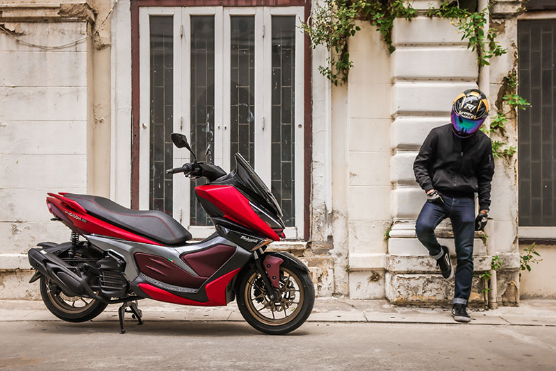 ออกแบบและพัฒนาโดยทีมงานจากอิตาลี ส่งมาผลิตที่เวียดนาม ก่อนส่งเข้ามาประกอบในประเทศไทย ซึ่งชิ้นส่วนกว่า 60% ก็มาจากไทย ดังนั้นชิ้นงานค่อนข้างไว้ใจได้มากพอสมควร …โดยเฉพาะส่วนของเครื่องยนต์ ขนาด 150 ซีซี. สูบเดี่ยว 4 วาล์ว ระบายความร้อนด้วยน้ำ “คาแรคเตอร์ชัด”…