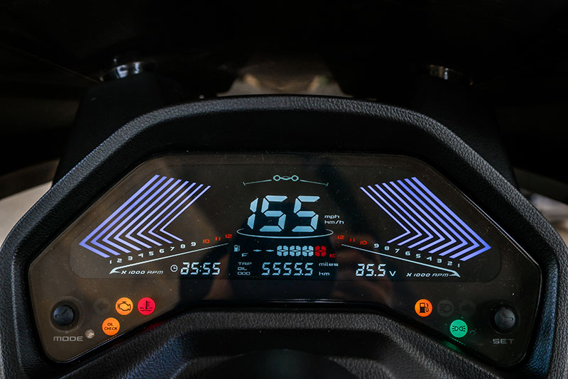 หน้าจอแสดงผลแบบฟูลดิจิทัลสไตล์สปอร์ตเต็มตัว ฟังก์ชันเด็ดคือ บอกระยะถ่ายของเหลวได้ โดยจะแจ้งเตือนเป็นไฟสัญญาณบริเวณหน้าจอเมื่อถึงระยะที่กำหนด…