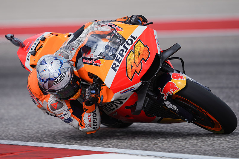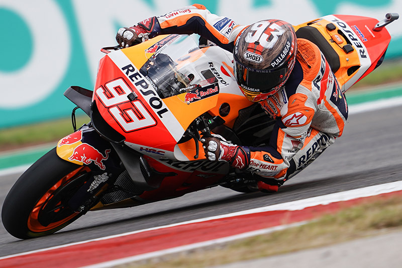 มาร์ค มาร์เกซ แชมป์โลก 8 สมัยจาก เรปโซล ฮอนด้า ควบรถแข่ง Honda RC213V หมายเลข 93 ทะยานคว้ากริดสตาร์ทที่ 3 ในศึกโมโตจีพี สนาม 15 รายการ กรังด์ปรีซ์ ออฟ ดิ อเมริกาส์ และป็นการคว้าตำแหน่งออกตัวในแถวหน้าครั้งแรก ในรอบ 441 วัน หลังคัมแบ็กจากอาการบาดเจ็บ