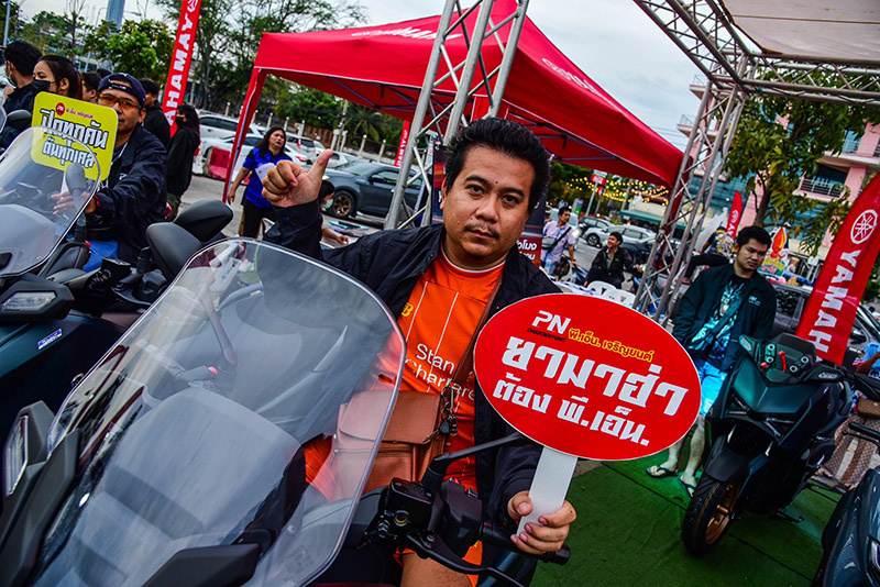 นายวุฒิ เบื้องสูง ผู้จัดการทั่วไปฝ่ายขายภาคกลาง บริษัท ไทยยามาฮ่ามอเตอร์ จำกัด พร้อมด้วย นายพิชญาณ บุปผเวส กรรมการผู้จัดการ บริษัท พี.เอ็น.เจริญยนต์ จำกัด ร่วมกันส่งมอบรถจักรยานยนต์ MAX Series จำนวน 20 คัน นำโดย New YAMAHA XMAX Connected 18 คัน และ New NMAX Connected 2 คัน ให้กับลูกค้าที่ให้ความไว้วางใจและเลือกที่จะมาซื้อรถกับร้านผู้จำหน่าย พี.เอ็น.เจริญยนต์ จังหวัดชลบุรี