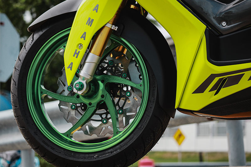 เบาะแต่งหน่อยวัดด่าน, โช้คหลัง Pro-Fender, ปั๊มเบรกหน้า-หลัง Brembo, แม็กล้อ Racing Power, แผ่นปิดชามใบพัด ครอบแครงค์ xmax งาน CNC Billet และสติ๊กเกอร์ลวดลายหุ่นตัวโปรด..