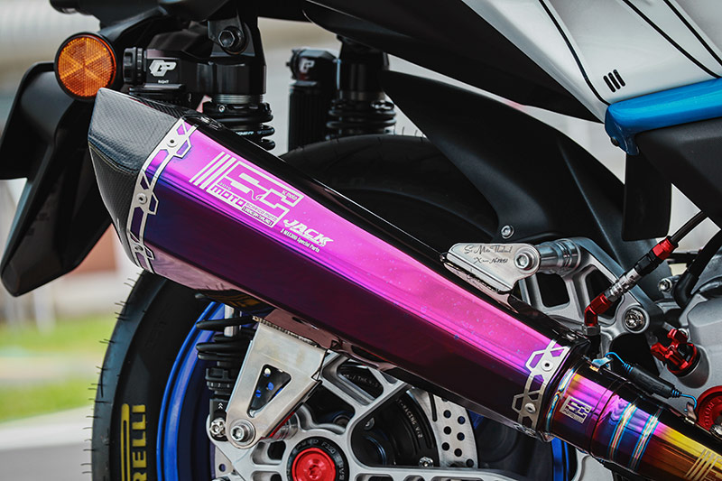 ส่วนอะไหล่อื่นๆนอกเหนือจากชิ้นแฟริ่งนั้นยังเน้นอะไหล่เดิม เสริมพาร์ทต่างๆด้วยงาน CNC จากแบรนด์ GTR บ้าง หรือแม้แต่การอัปเกรดโช้คอัพหลังด้วยโช้คจาก Pro-Fender เองก็ตาม