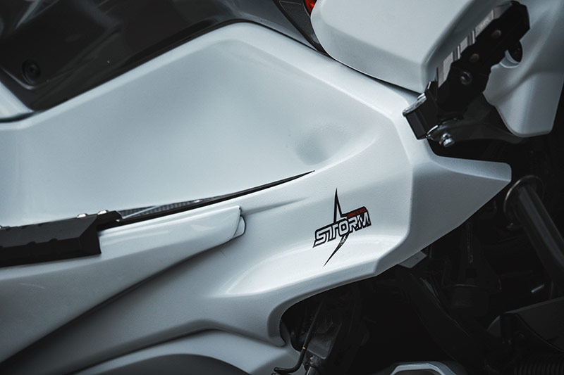รถคันนี้มีการสะท้อนภาพลักษณ์แห่งอนาคตเอาไว้ ได้เต็มที่ ด้วยชิ้นส่วนแฟริ่งตลอดคันสีขาวผ่อง ตัดขอบส้มสะท้อนแสง.. มองไปมาคลายรถคอนเซปต์ในยุคอนาคตที่เรามักจะหาได้จากการ์ตูนหรือนิยาย Sci-fi ในยุค 80-90 ..ซึ่งงานตกแต่งนั้นละเอียดลออไปถึงการคราฟต์ชิ้นงานใหม่ อย่างครอบล้อแม็กหน้าขอบมน, ครอบเบาะหลังสไตล์ตูดมด และพาร์ทตกแต่งสีขาวพาดกลางระหว่างเบาะคนขับ พร้อมเพนท์สีเข้าชุดรอบคันตามชิ้นส่วนต่างๆ รวมไปถึงขอบยาง.. เน้นโชว์ทักษะการคราฟต์ชิ้นงานในแบบเฉพาะเจาะจง ซึ่งถือเป็นเอกลักษณ์ และโชว์ความถนัดของ Storm ได้เป็นอย่างดี..