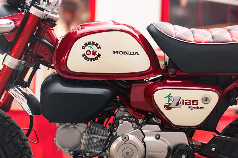 การกลับมาครั้งนี้ ด้วยบอดี้สีแดงตัดครีม พร้อมลวดลายรูปเชอร์รี่บนตัวถังของ New Monkey Custom Cherry Edition 2022 ที่เป็นการมิกซ์แอนด์แมทความสนุก สดใส ในยุคปัจจุบัน ให้เข้ากับความคลาสสิก และกลิ่นอายในยุค 80 ได้อย่างลงตัว ทั้งยังคงเสน่ห์ของดีไซน์แบบ Monkey ที่เป็นสามเหลี่ยม Nigiri (Unique Balance) เสริมความเท่อีกระดับด้วยล้อแม๊กสีดำ เฉพาะรุ่นนี้เท่านั้น มาพร้อมเครื่องยนต์ขนาด 125 ซีซี เกียร์ 5 สปีด