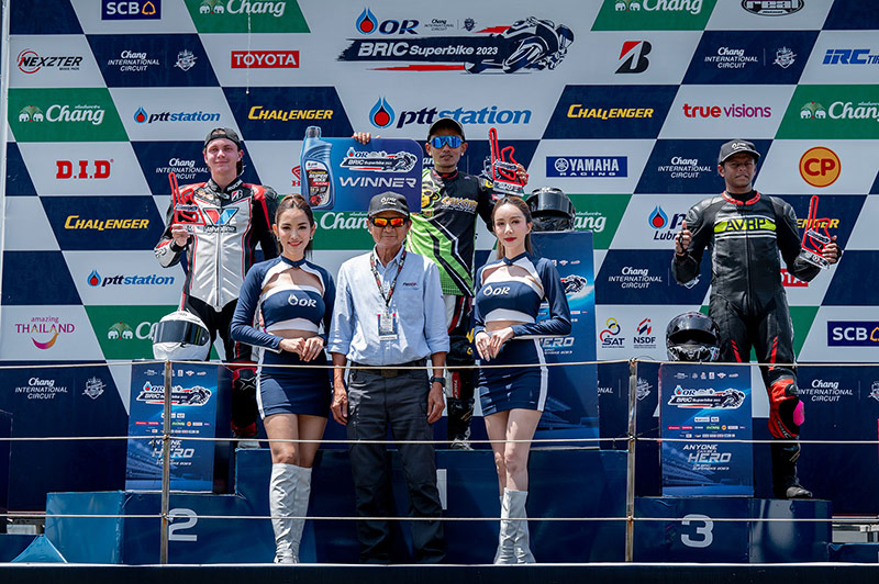 การแข่งขันจักรยานยนต์ทางเรียบชิงแชมป์ประเทศไทย รายการ โออาร์ บีอาร์ไอซี ซูเปอร์ไบค์ แชมเปียนชิพ 2023 สนาม 3 (OR BRIC Superbike Championship) ดวลความเร็วรอบชิงชนะเลิศ เมื่อวันอาทิตย์ที่ 30 กรกฎาคม 2566 โดยในหลายรุ่นต้องเจอสภาพแทร็กกึ่งแห้งกึ่งเปียก ทำให้นักแข่ง-ทีมแข่งต้องวางแผนการขับขี่อย่างหนัก สถานการณ์ลุ้นแชมป์ขับเคี่ยวกันอย่างมันหยด ท่ามกลางการติดตามของแฟนความเร็วทั่วโลก ซึ่งในปีนี้มีนักบิดต่างชาติร่วมดวลคันเร่งจากหลายประเทศ อาทิ ออสเตรเลีย, แคนาดา, สวีเดน, สหรัฐอเมริกา ฯลฯ