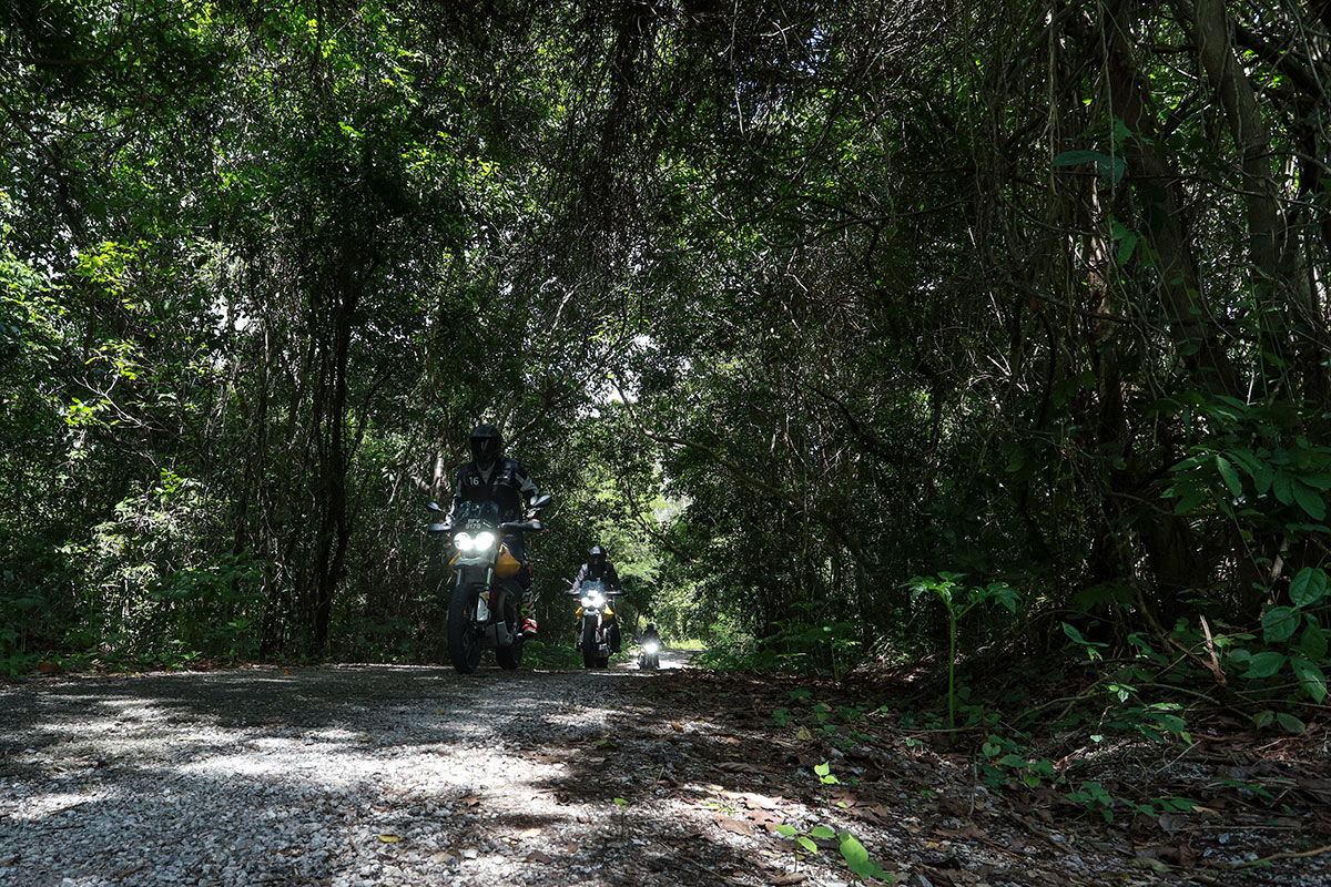 การวิ่งบนทางดิน ผมได้ทดสอบเปลี่ยนโหมดเป็น Off Road ซึ่งสัมผัสได้ถึงความสมูทของ Moto Guzzi V85 TT เรียกว่าตรงข้ามกับสิ่งที่ผมคิดไว้จากแรกเห็น หลายๆคนคงคิดเหมือนผม (มั้งนะครับ) มันดูควบคุมยาก ดูเทอะทะอ้วนๆ แต่ผมบอกเลยว่าผมรู้สึก มันควบคุมได้ง่ายและสมูทมาก