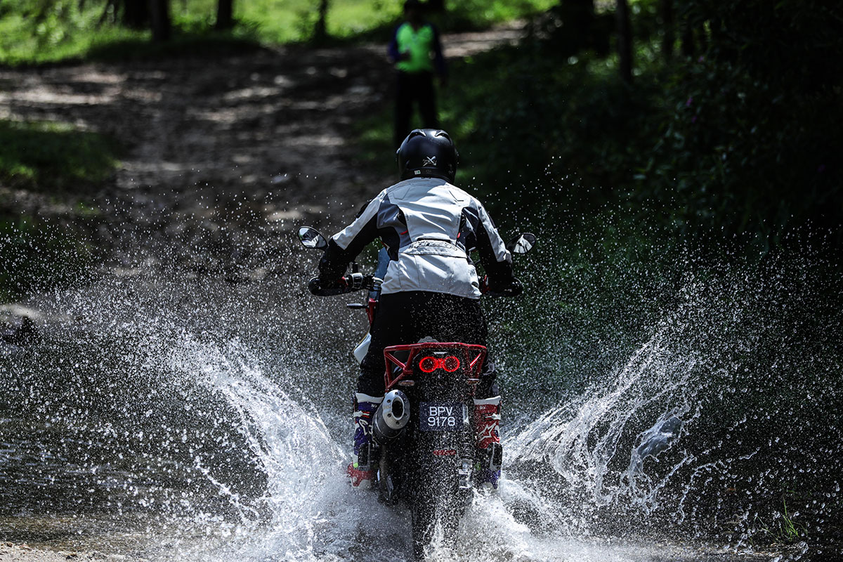 ในส่วนของการยืนขับขี่ มิติของแฮนด์บาร์กว้างควบคุมวงเลี้ยวได้ง่าย ตัวถังที่เว้าทำให้ใช้หัวเข่าหนีบได้กระชับ และในโหมด Off Road ระบบ MGCT ทำงานได้อย่างอัจฉริยะ มีการตัดกำลังของเครื่องยนต์ที่เหมาะสม ช่วยให้มือใหม่ที่อยากจะเปิดประสบการณ์ในการขับขี่แนว adventure ใช้งานมันได้อย่างปลอดภัย