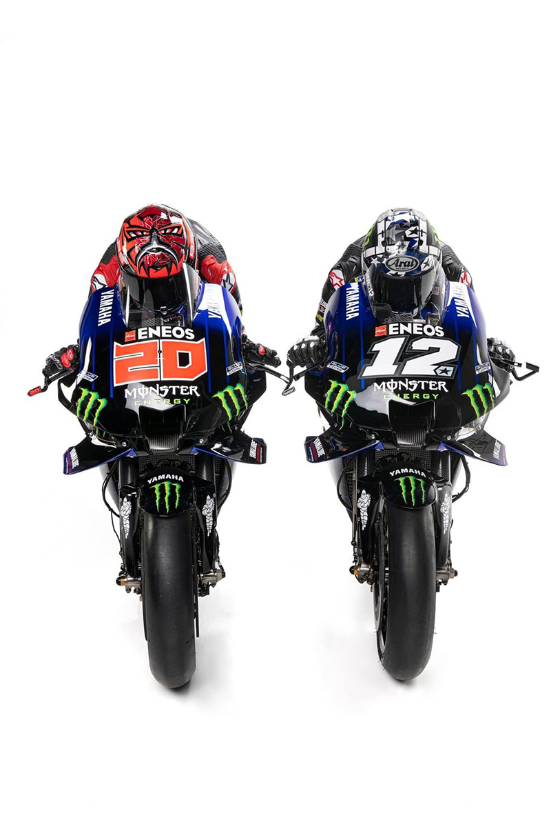 ยามาฮ่า แฟคทอรี่ เรซซิ่งทีม เปิดตัวทีม “มอนสเตอร์ ยามาฮ่า โมโตจีพี” ลุยศึกชิงแชมป์โลก MotoGP 2021 อย่างเป็นทางการ โดยในปีนี้ ยามาฮ่าแฟคทอรี่เรซซิ่ง วางเป้าหมายอยู่ที่การคว้าแชมป์โลกกับรถแข่ง YAMAHA YZR-M1 โดยมี 2 นักแข่งตัวหลักอย่าง “ท็อปกัน” มาเวริค บีญาเลส #12 นักบิดหนุ่มชาวสแปนิช และดาวรุ่งที่ยามาฮ่าได้ทำการเซ็นสัญญาเข้าร่วมสังกัดอย่าง “เจ้าหนูปิศาจ” ฟาบิโอ กวาตาราโร่ #20 ดาวบิดจากแดนน้ำหอม ประเทศฝรั่งเศส ที่สร้างผลงานได้อย่างยอดเยี่ยมกับรถแข่ง YAMAHA YZR-M1 ได้ดีอย่างต่อเนื่องกับต้นสังกัดเดิมในปีที่ผ่านมา พร้อมกันนี้ ยามาฮ่า ยังดึง คาล ครัทช์โลว อดีตนักแข่งในสังกัด YAMAHA TECH3 กลับมาร่วมงานกับยามาฮ่าในฐานะนักทดสอบ และพัฒนารถแข่ง YZR-M1 ในภารกิจการทวงความยิ่งใหญ่ใน โมโตจีพี อีกด้วย