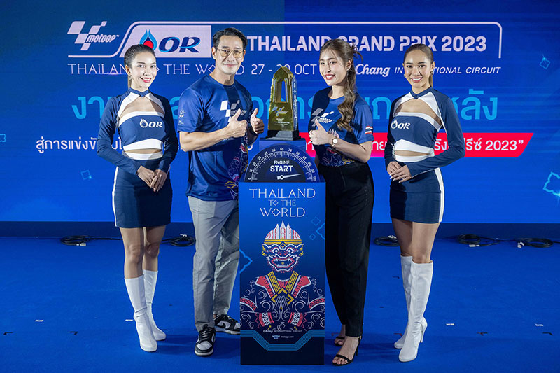 ภายในงานมีพิธีนับถอยหลัง 15 วันสู่การแข่งขันโมโตจีพี รายการ “โออาร์ ไทยแลนด์ กรังด์ปรีซ์ 2023” ท่ามกลางการรอคอยของแฟนมอเตอร์สปอร์ตชาวไทยและทั่วโลก กับการเป็นเจ้าภาพปีที่ 4 พร้อมเปิดตัว โทรฟี่ “โออาร์ ไทยแลนด์ กรังปรีซ์ 2023” หรือ “ถ้วยรางวัลโมโตจีพี สนามประเทศไทย” เลอค่า อร่ามตาด้วยธีมสีทองสุดอิลิแกนซ์ ออกแบบโดยอิงรูปแบบจากปรากฏการณ์ความยิ่งใหญ่ “พระอาทิตย์ขึ้น-ตก ผ่านช่องประตูทั้ง 15 บาน” ของปราสาทหิน “พนมรุ้ง” จังหวัดบุรีรัมย์ โดยแสงที่ลอดมาเป็นสีทองและภาพจำ ในความ Unseen และสถาปัตยกรรมฝีมือช่างโบราณที่คนทั่วโลก ต้องมาเยือนสักครั้งในชีวิต ผสานให้เกิดแรงจูงใจในการท่องเที่ยวเชิงกีฬาอย่างลงตัว