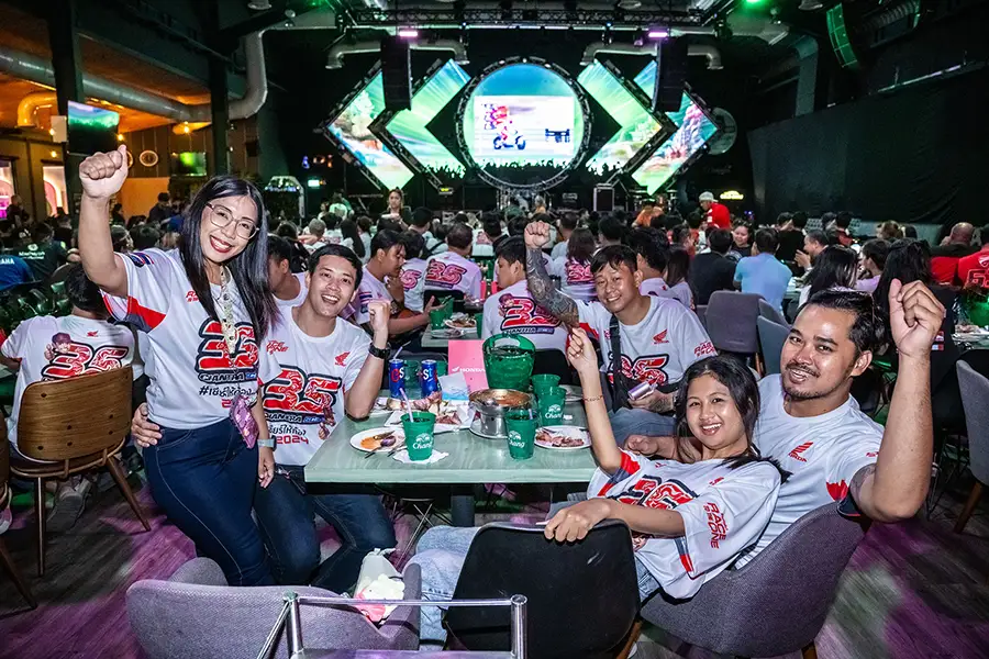 บรรยากาศภายในงานมีกองทัพแฟนคลับโมโตจีพีและสื่อมวลชน ร่วมงานมากกว่า 500 คน ร่วมชม-เชียร์ ร่วมลุ้นนักบิดที่ชื่นชอบกับการแข่งขัน สนามที่ 12 อรากอน จีพี ประเทศสเปน พร้อมช่วยกันส่งเสียงเชียร์ นักบิดที่เป็นความภาคภูมิใจของชาวไทย “ก้อง”สมเกียรติ จันทรา และลุ้นรางวัลสุดเอ็กซ์คลูซีฟ ที่ส่งมอบประสบการณ์สุดล้ำค่าให้กับแฟนคลับโมโตจีพี อาทิ บัตร Paddock สำหรับกระทบไหล่นักบิดดังแบบใกล้ชิด, บัตร Pit Walk ที่ผู้ถือบัตรจะสามารถชมรถแข่งมูลค่าหลายร้อยล้านและพิตการทำงานของทีมชื่อดังของโลก, ของที่ระลึก ThaiGP Collection ลิขสิทธิ์แท้และของรางวัลอื่นๆมากมาย โดยมีคอนเสิร์ตจากศิลปินรุ่นใหญ่ วงร็อกหัวดำ นำโดย ปู-อานนท์ สายแสงจันทร์ และวง BLACKHEAD ที่นำเพลงฮิตมากมายมาให้ฟังอย่างจุใจ