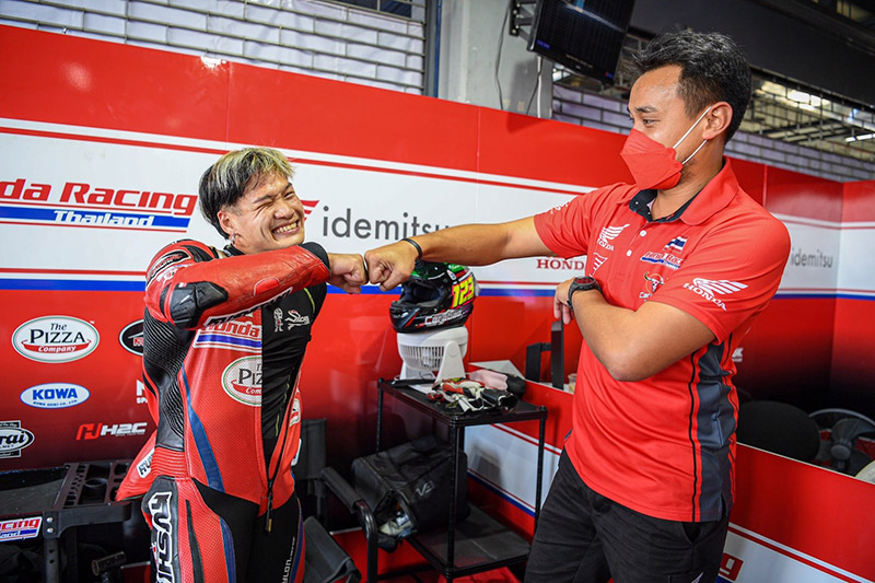 หลังจากที่ทำงานอย่างหนักในช่วง 3 สนามที่ผ่านมา ฮอนด้า เรซซิ่ง ไทยแลนด์ ยอดทีมแข่งระดับเอเชียก็พัฒนารถแข่ง Honda CBR600RR ได้อย่างลงตัว ส่งผลให้ 3 นักบิดอย่าง “มุกข์” มุกข์ลดา สารพืช หมายเลข 44, “แชมป์” ภาสวิชญ์ ฐิติวรารักษ์ หมายเลข 123 และ “ดรีม” สิทธิศักดิ์ อ่อนเฉวียง หมายเลข 45 ขยับสร้างผลงานได้ดีขึ้นอย่างต่อเนื่อง