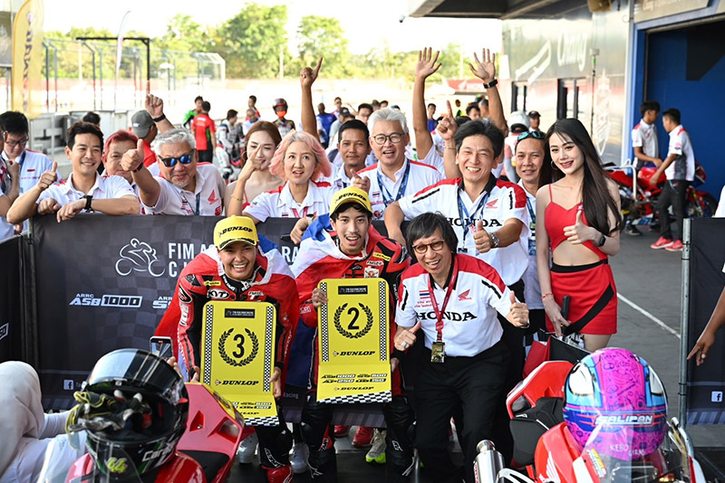 “ข้าวกล้อง” จักรีภัทร พฤฒิสาร คว้าอันดับที่ 2 บนโพเดียมและ “มุกข์” มุกข์ลดา สารพืช ขึ้นโพเดียมในอันดับที่ 3 พาธงชาติไทยขึ้นฉลองดับเบิ้ลโพเดียมต่อหน้ากองเชียร์ฮอนด้าและแฟนความเร็วทั่วเอเชีย ขณะที่ “มิกซ์” ธนัช ละอองปลิว หมายเลข 11 ต่อสู้อย่างยอดเยี่ยมเช่นกันเข้าเส้นชัยในอันดับที่ 7
