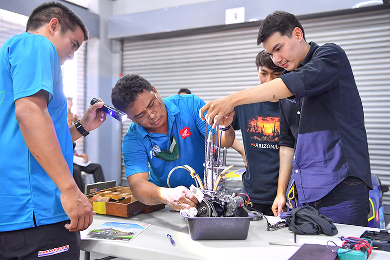 ทีมผู้ชนะเลิศการแข่งขันประเภทรถประดิษฐ์ ระดับอุดมศึกษา ได้แก่