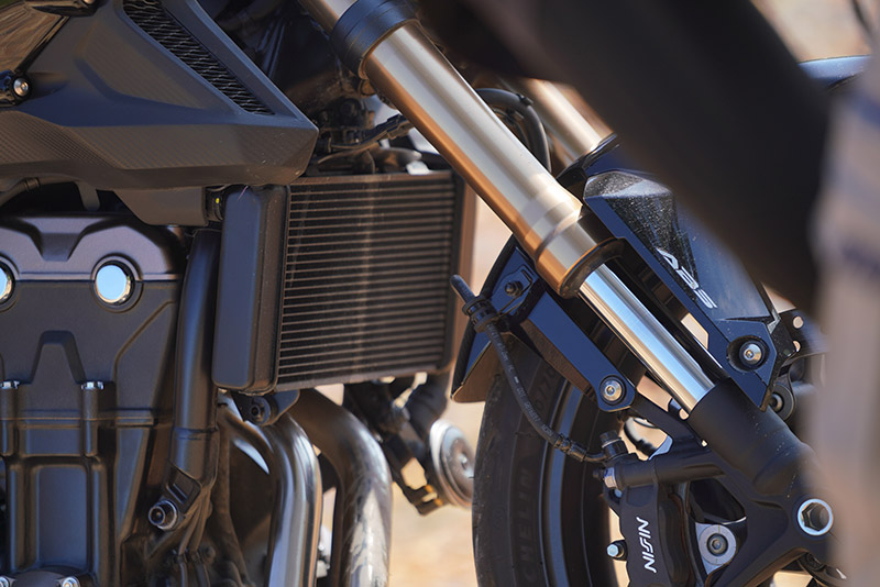 เบรกใหม่ คือใจความสำคัญ เวอร์ชั่นนี้เปลี่ยนมาใช้ ดิสก์เบรกหน้าคู่ คาลิเปอร์ Nissin เรเดียลเมาท์ จานดิสก์หน้าแบบโฟลทติ้ง 296 มม. พร้อมระบบ ABS 2 ชาแนล นอกจากหล่อและเต็มขึ้น ยังให้บทสรุปเรื่องหยุดความเร็วได้ดีเยี่ยม เบรกแล้วมั่นใจขึ้นอีกหลายเท่าจากเวอร์ชั่นก่อนๆ อีกทั้งการตอบสนองของ ABS ละเอียดและแม่นยำ