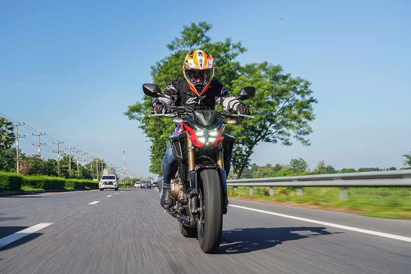 หน้าตาของ CB500F ปี 2022 เปลี่ยนรายละเอียดเล็กน้อยด้วยชุดไฟหน้าที่ปรับรูปแบบใหม่ ใช้ชุดไฟต่ำ 4 โมดูล แล้ววางตำแหน่งไฟสูงไว้คู่กลาง บนล่าง ความเข้มของแสงเพิ่มขึ้น 25% แสงสว่างชัดและปลอดภัยขึ้น ใครที่เกรงใจรถสวนทางมา(เพราะไฟหน้าแรง) สามารถจูนลดองศาการส่องของไฟลงมาได้(อยู่ที่ฝั่งซ้ายด้านในของหัวรถ) ถังน้ำมันของ F มีขนาดความจุ 17.1 ลิตร รองรับการวิ่งทริป หน้าปัดเรือนไมล์ให้ฟังก์ชั่นครบถ้วน ตั้งทริปได้ 2 ทริป มีเลขบอกเกียร์และการคำนวณอัตราสิ้นเปลืองเชื้อเพลิงแบบเรียลไทม์