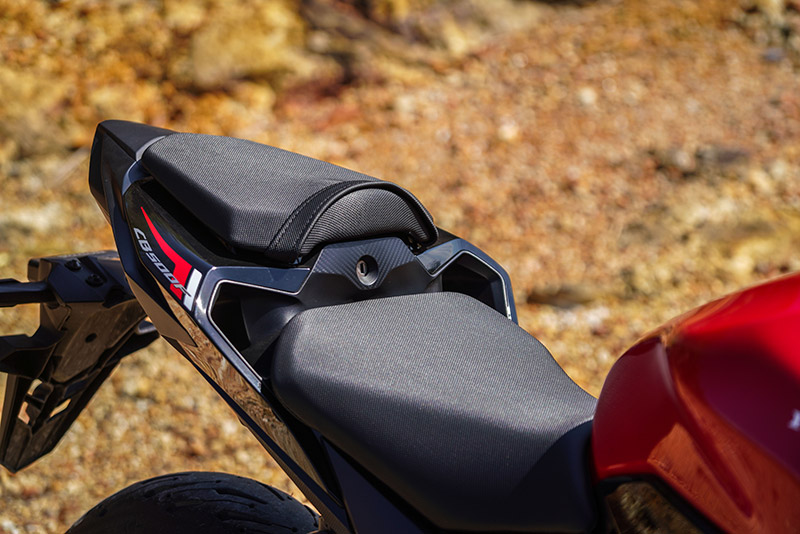 รวมทั้งการออกแบบวาง บาล๊านซ์ตัวรถให้ทิ้งน้ำหนักไปด้านหน้ามากขึ้น โดยมีสวิงอาร์ม ใหม่ เบาลงกว่าเดิม 1 กก. เป็นชิ้นงานแบบอัดขึ้นรูป ดูเหมือนบางลง แต่ชุดด้านในใกล้จุดยึดกระเดื่องใหญ่ขึ้น ตัวสวิงอาร์มที่ออกแบบใหม่นี่มีการทำให้กระจายน้ำหนักมาด้านหน้ามากขึ้น เสริมการทำงานของโช้คหน้า-หลังให้ซับแรงได้ดีขึ้นนั่นเอง น้ำหนักสุทธิ CB500F 2022 อยู่ที่ 189 กก. (เบาที่สุดในพี่น้อง 500 ซีรีส์) แต่นี่คือรถที่ขี่ใช้งานในเมืองสบายๆครับ ส่วนเรื่องออกทริป สบายหายห่วงอยู่แล้วเพราะมิติสปอร์ตบางส่วนถ่ายทอดมาจากตัว R ทำให้ขี่ลู่ลมได้ดี