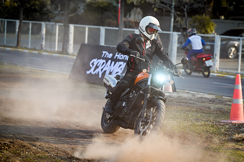 ด้วยเครื่องยนต์คลาส 300 ซีซี. แบบเดียวกับที่ใช้ใน CRF 300 โมเดลลุยฝุ่นสุดมัน ถูกวางใส่เฟรมลักษณะแบบนี้ ทำให้ลักษณะการต่อเกียร์แต่ละช่วงมีความกระชั้นชิดตั้งแต่เกียร์แรก บนมิติรถสไตล์คลาสสิกสแครมเบลอร์.. แม้ว่ายืนขับขี่ไม่สะดวกเท่าไร แต่การขยับตัวขึ้นมาช่วงหน้ารถก็ยังถือว่าทำได้ง่าย สามารถนำไปขับขี่ลุยดินได้แบบขำๆ หรืออย่าจะปั่นสไลด์กับเพื่อนก็ทำได้แน่นอน