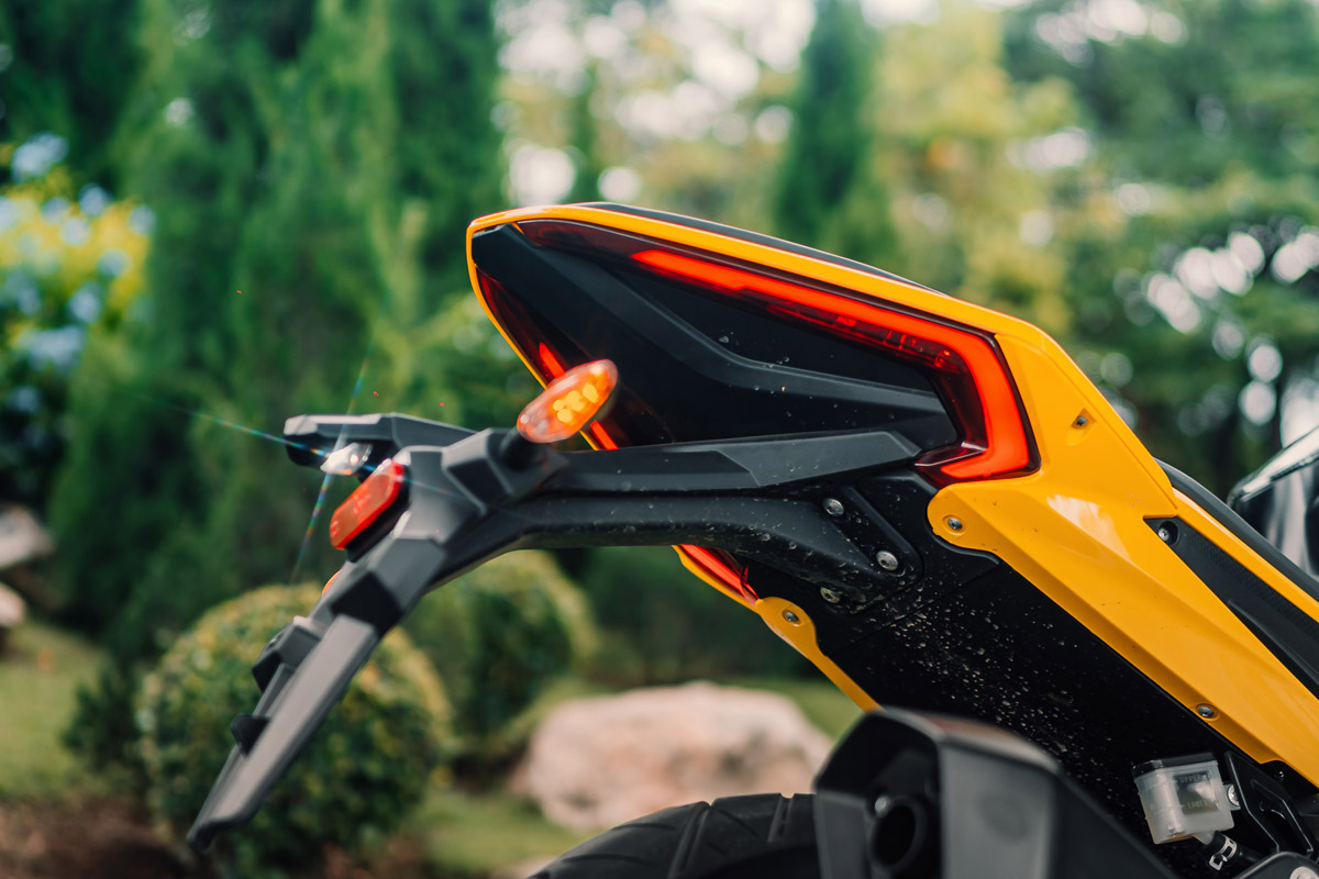 ระบบไฟส่องสว่าง ผมชอบมากที่ GPX วางชั้นเชิงการออกแบบได้เท่ดี ไฟหน้า build-in ฝังแยกส่วนไว้ที่ด้านข้างของตัวรถ แล้วยังมี DRL (Daytime running light) ลงตัว ไฟท้าย / ไฟเบรก ให้ภาพของความล้ำ อัตลักษณ์ของรุ่น GR200R ชัดเจน เรื่องระบบไฟไม่ใช่แค่สวยงาม เพราะในช่วงการเดินทางขากลับที่ขี่กลางคืนท่ามกลางสายฝน ความสว่างคมชัดของไฟทั้งระบบช่วยได้มากให้จบทริปอย่างปลอดภัย