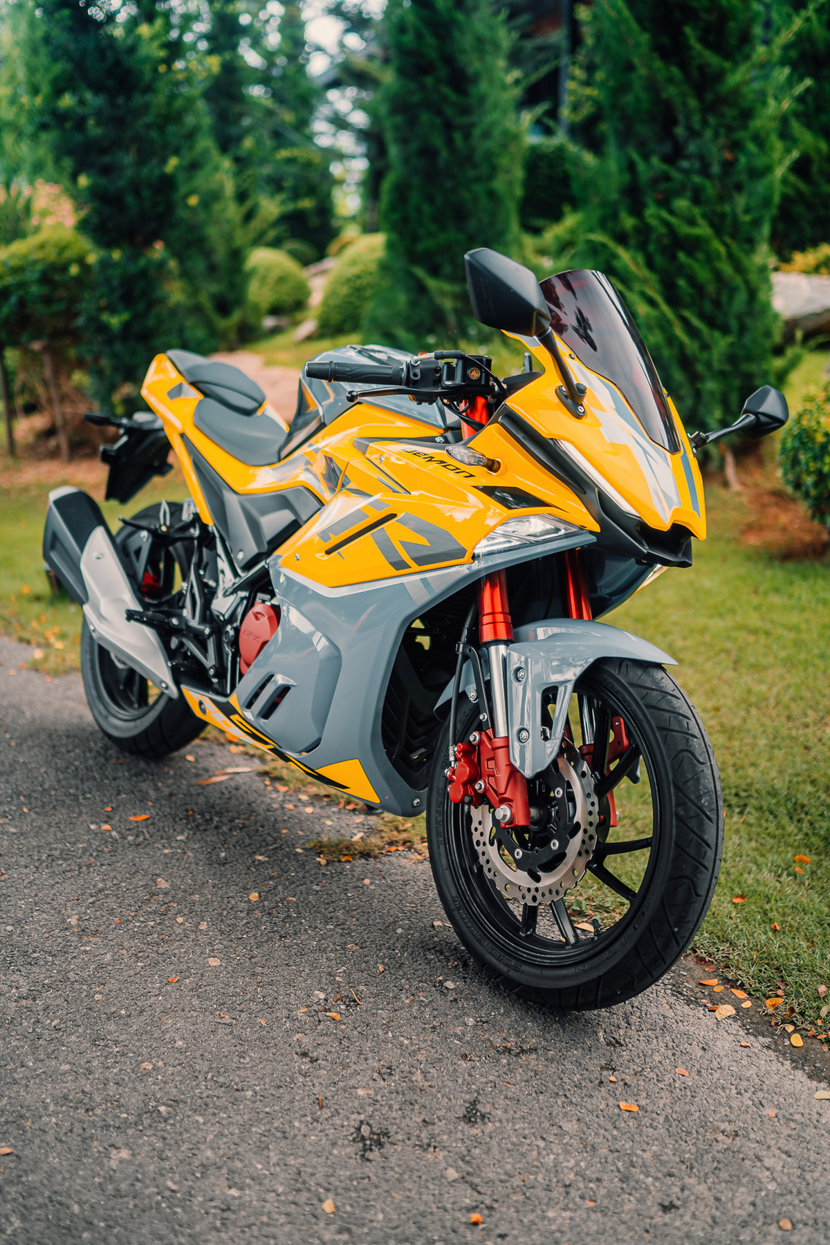 สังเกตว่า GR200R 4V เน้น “คู่สี” แมตช์กันทั้ง 3 เฉดสี ที่ได้ลองคือ เหลือง-เทา (วันนั้นขี่จอดติดไฟแดง ถึงกับมีคนข้ามถนนมาถาม ว่านี่ตัวใหม่ GPX หรา)
