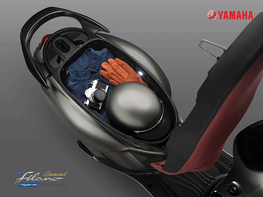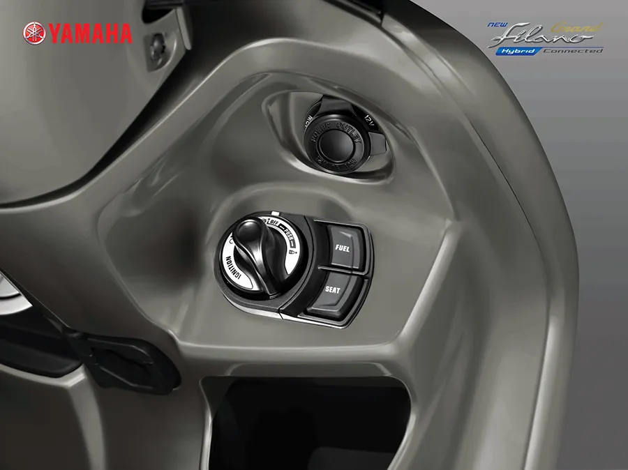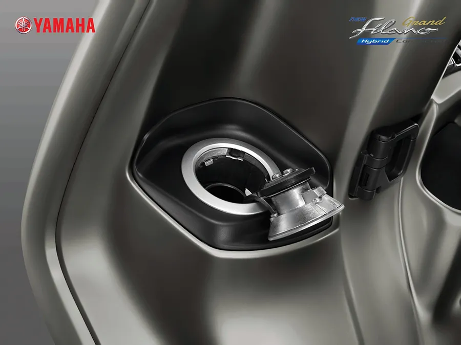 NEW YAMAHA GRAND FILANO HYBRID CONNECTED ยังให้เติมเต็มทุกฟังก์ชั่นการใช้งานได้อย่างครบครัน CLASSY with PREMIUM FEATURES ด้วยระบบกุญแจรีโมทอัจฉริยะ SMART KEY SYSTEM (เฉพาะรุ่น ABS) บ่งบอกถึง ความมีระดับ สะดวกกว่าด้วยสวิตช์ปิด-เปิด แบบ Multi Functions ทั้งปลดล็อกสตาร์ท / ดับเครื่องยนต์ / ปลดล็อกแฮนด์ / ปลดล็อกเบาะ / ปลดล็อกฝาถังน้ำมัน, ฟังก์ชั่นใหม่ ช่องชาร์จแบตเตอรี่มือถือ USB Type A ชาร์จแบตเตอรี่มือถือได้ พร้อมช่องใส่ของด้านหน้าขนาดใหญ่, ที่เก็บของใต้เบาะพร้อมไฟ LED ส่องสว่าง ขนาดใหญ่ถึง 27 ลิตร เก็บหมวกกันน็อกได้ 2 ใบ และช่องเติมน้ำมันด้านหน้า SMART & EASY REFUEL เติมน้ำมันง่าย สะดวกสบาย ไม่ต้องลงจากรถ พร้อมปุ่มกดเปิดฝาอัตโนมัติ ใช้ง่ายเพียงปุ่มเดียว ไม่ยุ่งยาก