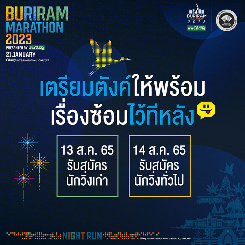 ความเคลื่อนไหวของการแข่งขันวิ่ง “บุรีรัมย์ มาราธอน 2023 พรีเซนเต็ด บาย เครื่องดื่มตราช้าง” ไนท์รันอันดับหนึ่งของไทย สวรรค์ของนักวิ่งที่ทุกคนรอคอย มีกำหนดจัดขึ้นในวันที่ 21 มกราคม 2566 ที่ สนามช้าง อินเตอร์เนชั่นแนล เซอร์กิต และสนามช้าง อารีนา จ.บุรีรัมย์