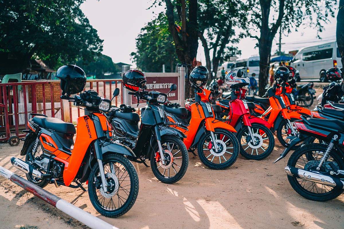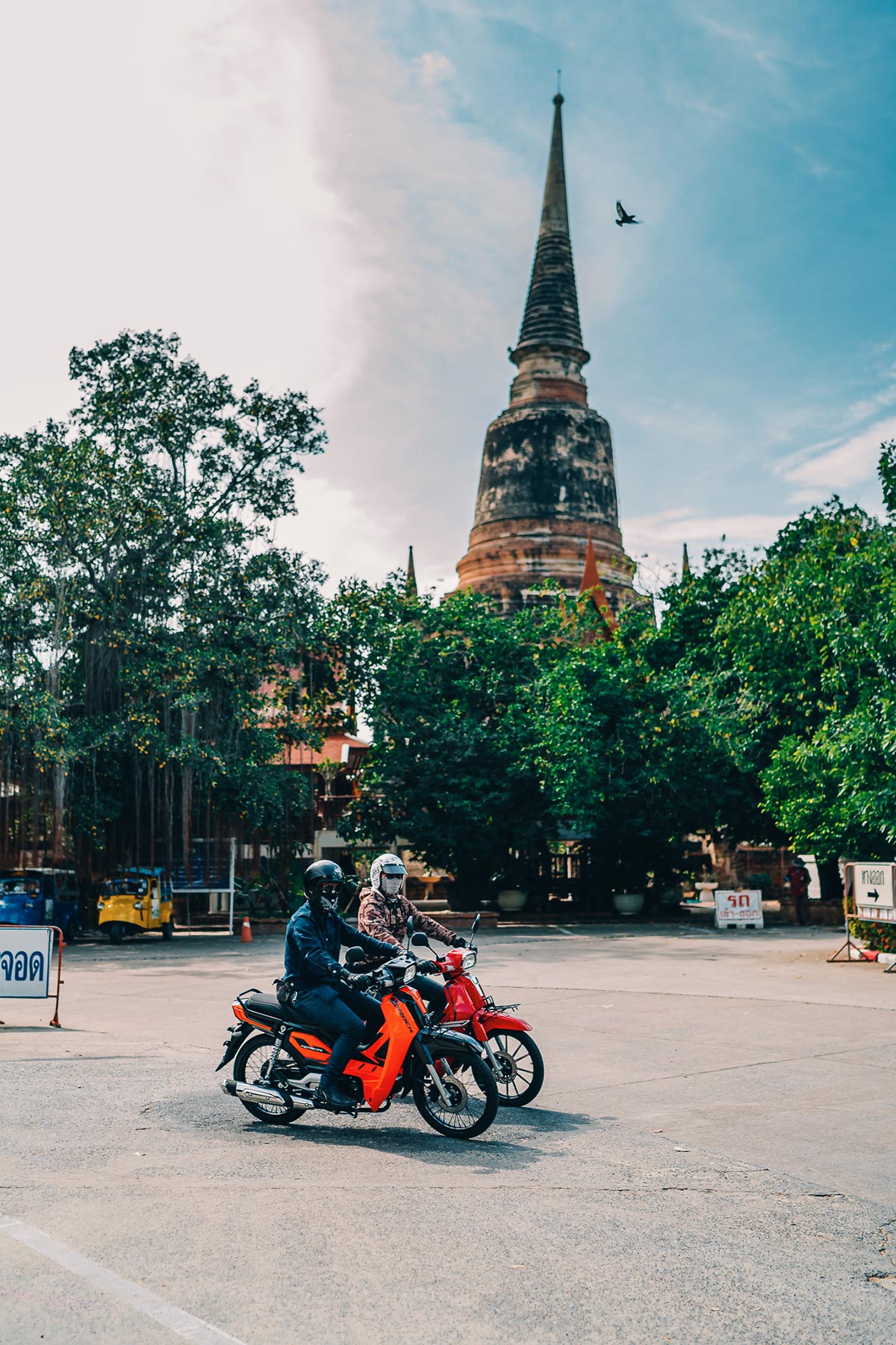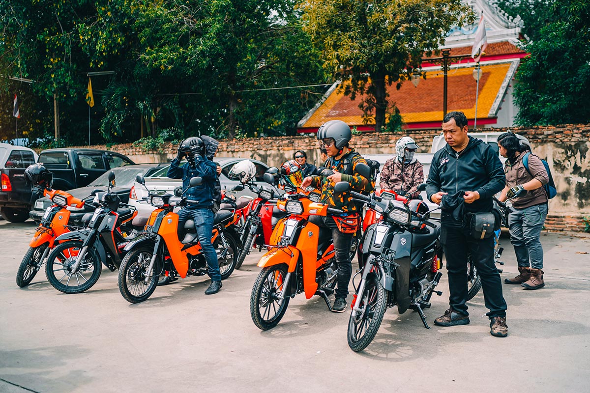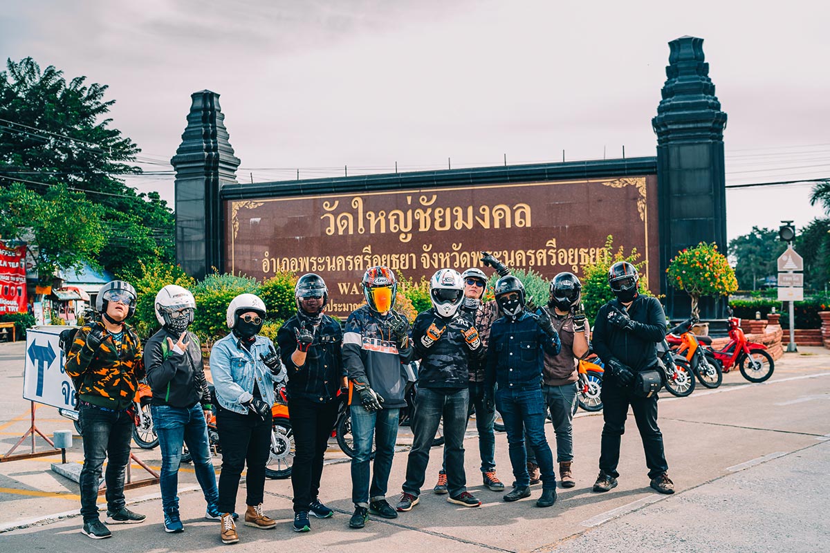 ทริปนี้สตาร์ทจาก หจก.หิรัญมอเตอร์ อยุธยาซึ่งมี GPXROCK ทั้ง 3 รุ่น เรียงแถวมา 10 คันให้เลือกขี่ตามต้องการ ซึ่งผมเลือกประเดิมด้วยรุ่น SPORTสีส้ม สัมผัสแรกก็รู้เลยว่า ช่วงรถกระชับ เบา คอนโทรลง่าย เครื่อง 109 ซีซี. 4 เกียร์ ระบบหัวฉีด GPX Fi สตาร์ทติดง่ายดาย ช่วงเกียร์ 1-2 เครื่องยนต์ให้แรงบิดที่ตอบสนองดีทีเดียว จากนั้นขบวนก็ออกเดินทางไปสู่จุดหมายแรก ที่ “วัดใหญ่ชัยมงคล” ซึ่งผมก็อาศัยช่วงเวลานี้ค่อยๆทำความเข้าใจกับตัวรถ พร้อมกับเก็บบรรยากาศของวัดใหญ่ชัยมงคลที่มีประวัติว่าสมเด็จพระนเรศวร ได้ทรงบูรณะและให้สร้างเจดีย์สูงที่สุดในอยุธยาเพื่อฉลองชัยชนะต่อพม่า