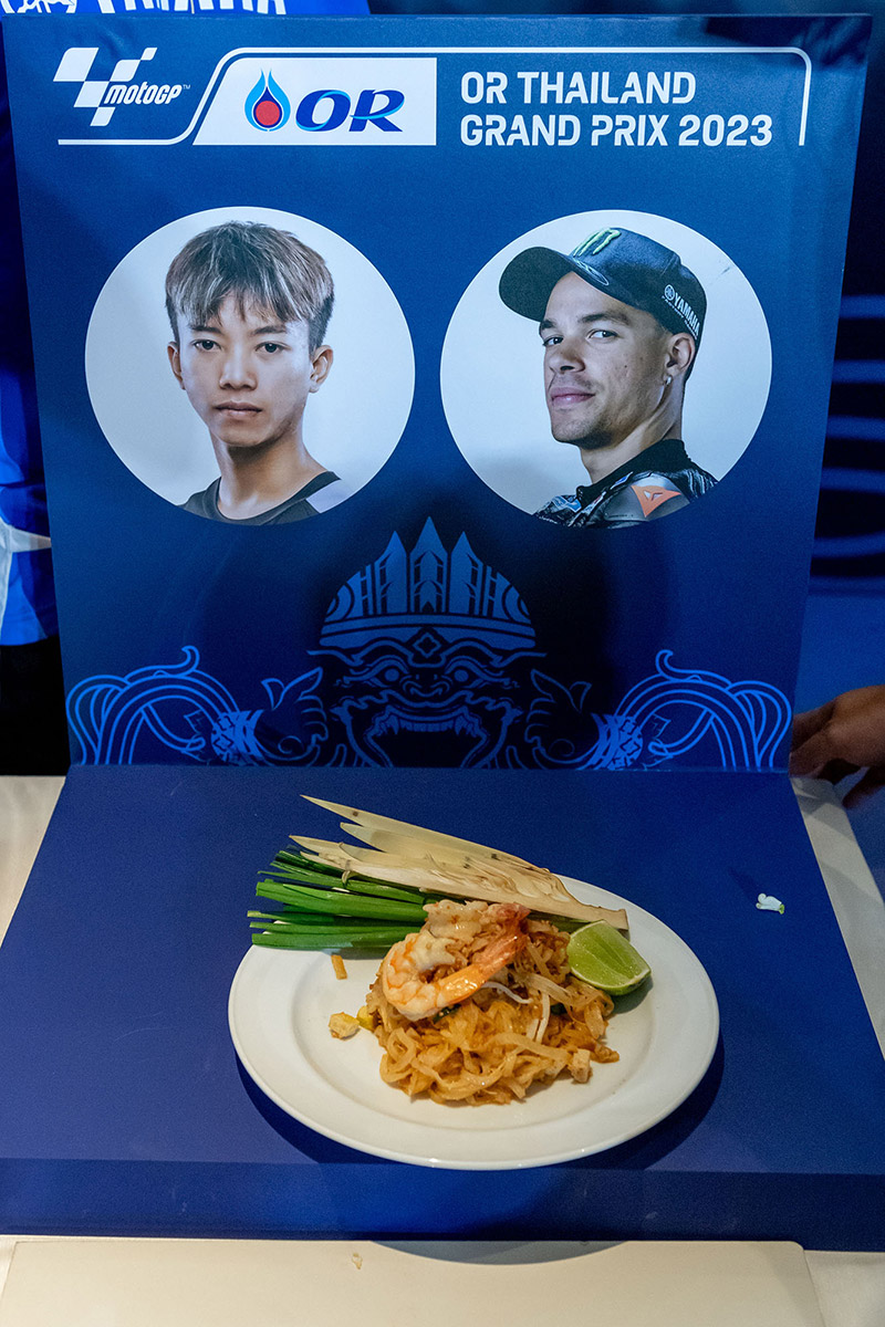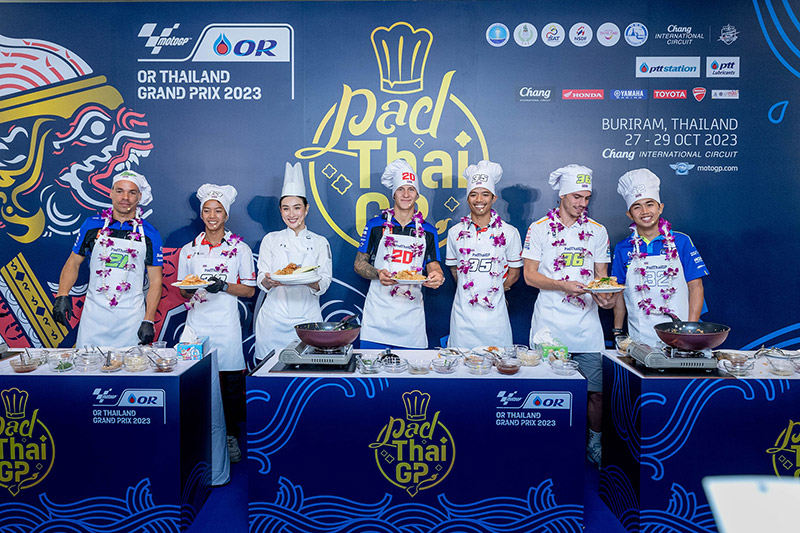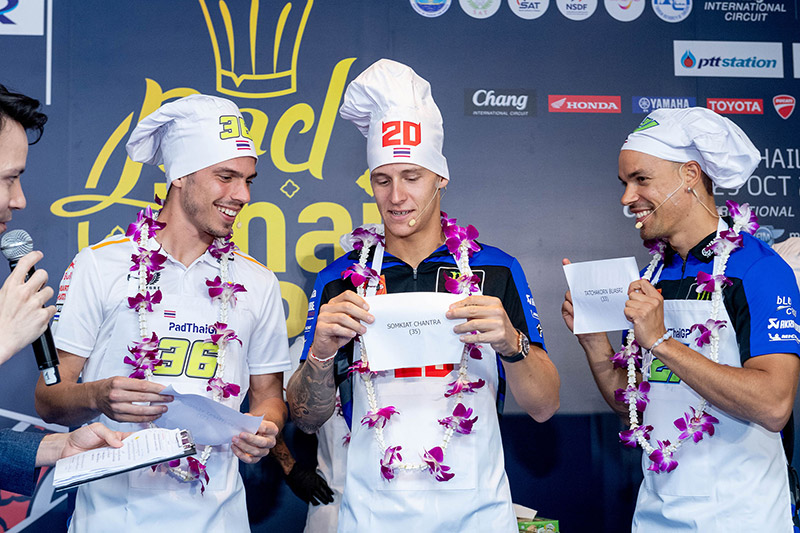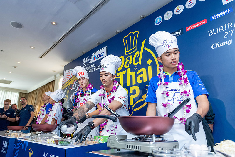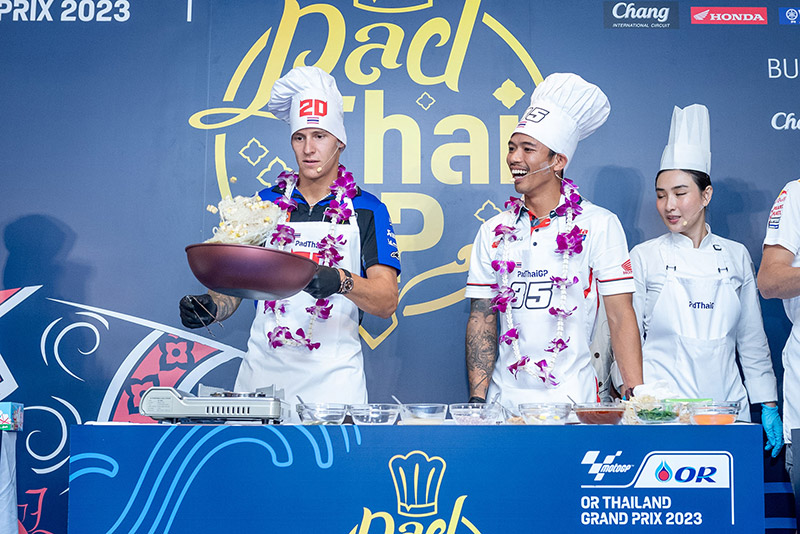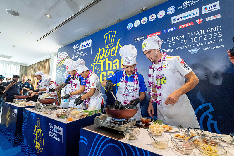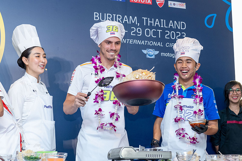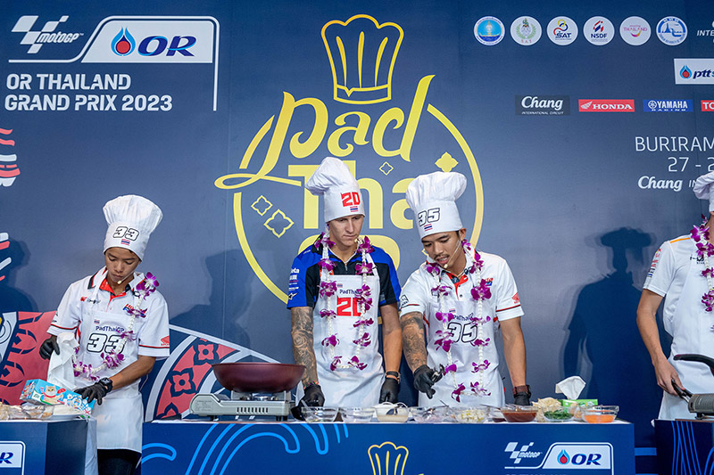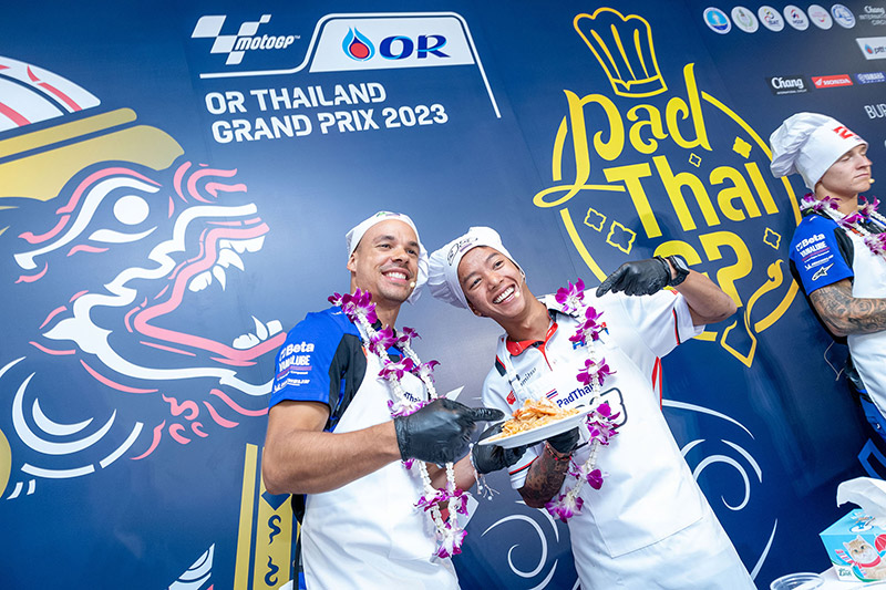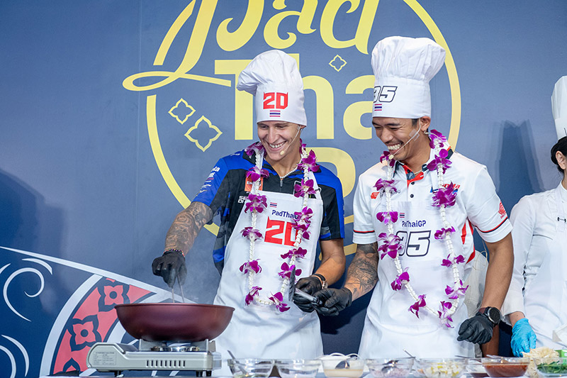 ฟรังโก้ มอร์บิเดลลี่ นักบิดโมโตจีพีชื่อดังจากยามาฮ่า และ “ก๊องส์” ธัชกร บัวศรี นักแข่งดาวรุ่งชาวไทยจากทีมฮอนด้า ครองเจ้าสมรภูมิกระทะเดือด คว้าถ้วย “ผัดไทยจีพี” ไปครอง ในกิจกรรม Pre-Event สุดน่ารักที่จัดต้อนรับนักบิดและเป็นส่วนหนึ่งของการถ่ายทำวีดีโอโปรโมตประเทศไทยของทีมดอร์น่า สปอร์ต ที่ปักหลักถ่ายทำ สถานที่สวยงามรอบเกาะรัตนโกสินทร์และแลนด์มาร์คสำคัญของกรุงเทพ ตื่นตาแฟนโมโตจีพีทั่วโลก ในการนำเหล่าเทพนักบิดชื่อดังระดับโลก “กวาร์ตาราโร-มอร์บิเดลลี่-เมียร์” ปะทะ 3 นักบิดไทย “ก้อง-ก๊องส์-ไอเดีย” แข่งขันทำสุดยอดเมนูสตรีทฟู้ดแสนอร่อยที่สร้างชื่อและภาพจำให้กับประเทศไทยตลอดกาล สูตรเด็ดจากเชฟ “กระติ๊บ” ชวัลกร วรรธนพิสิฐกุล ดีกรีนางเอกดัง เตรียมถ่ายทอดภาพความสวยงามและเรื่องราวต่างๆในช่วงการแข่งขัน 27-29 ต.ค.นี้ สู่แฟนมอเตอร์สปอร์ตกว่า 207 ประเทศ 800 ล้านคนทั่วโลก