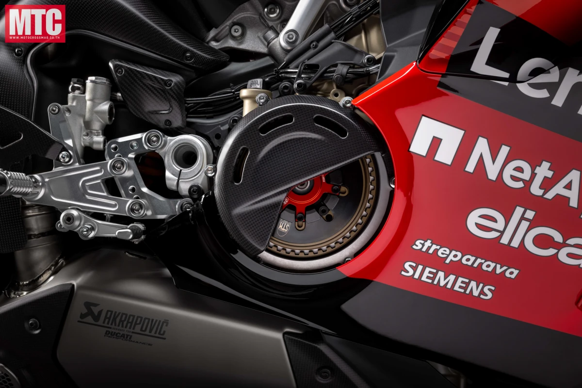 อย่างที่บอกไปข้างต้นว่ามีเบสพื้นฐานมาจาก V4S ดังนั้นเครื่องยนต์ก็เลยจะเป็น Desmosedici Stradale 4 สูบวีระบายความร้อนด้วยน้ำ ขนาด 1,103 ซีซี มีระบบคลัตช์แห้ง ติดตั้งท่อ Akrapovic ที่เบากว่าท่อเดิม 2.5 กก. และทำให้แรงยิ่งขึ้น โดยเคลมแรงม้าสูงสุดมาที่ 218.5 แรงม้าที่ 13,500 รอบต่อนาที และแรงบิดสูงสุดที่ 122.1 นิวตันเมตรที่ 11,250 รอบต่อนาที