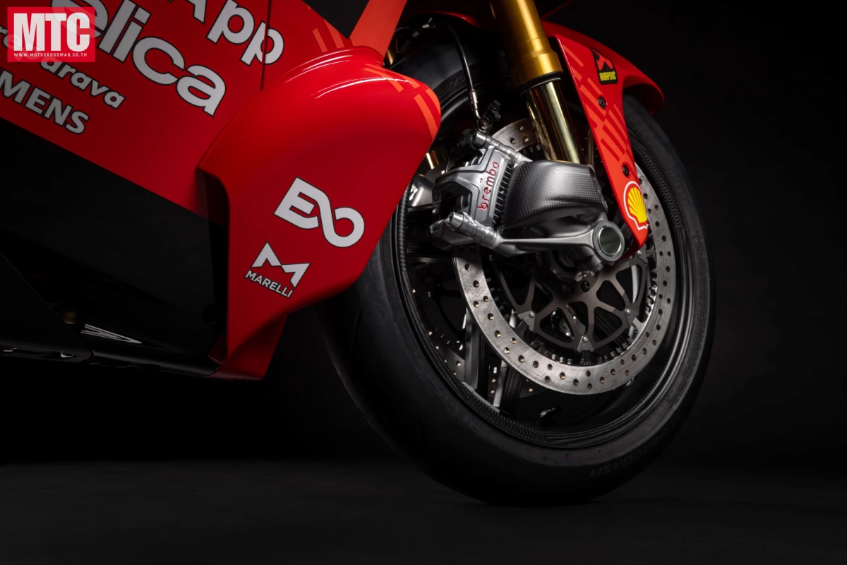 | ระบบกันสะเทือน | – ด้านหน้า โช้คหัวกลับ Ohlins NPX30 ขนาด 43 มม. ปรับไฟฟ้า – ด้านหลัง สวิงอาร์มคู่แบบกลวงและโช้คเดี่ยว Ohlins TTX 36 ปรับไฟฟ้า |