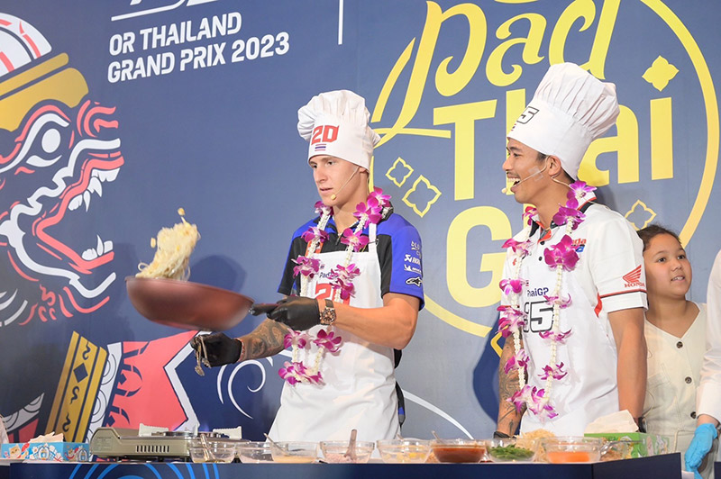 ฟาบิโอ กวาร์ตาราโร #20 แชมป์โลก 1 สมัย นำทีมคู่หู ฟรังโก มอร์บิเดลลี #21 และ ดาวรุ่ง ไอเดีย กฤตภัทร เขื่อนคำ #32 ลุยกิจกรรม Pre-Event โปรโมทการแข่งขัน รถจักรยานยนต์ทางเรียบรายการ โออาร์ ไทยแลนด์ กรังด์ปรีซ์ 2023 นำสุดยอดนักบิด MotoGP ร่วมเปิดประสบการณ์ใหม่กับกิจกรรมการแข่งขันผัดไทย จีพี “PadThai GP Contest” ซอฟต์พาวเวอร์แห่งความอร่อย