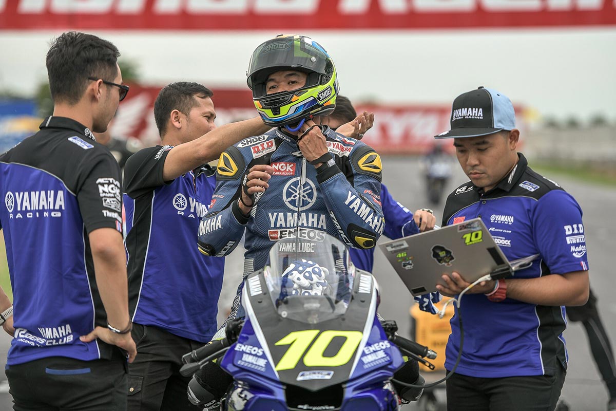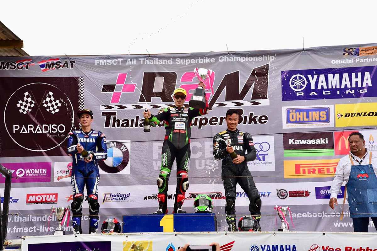 ก่อนที่ คู่หูนักบิดค่ายยามาฮ่า จะไล่บดคู่แข็งอย่างสุดมันส์ และบิดคว้าโพเดี้ยอันดับ 2 จากผลงานของ เบียร์-เฉลิมพล ผลไม้ #65 ขณะที่ ซุป-อนุชา นาคเจริญศรี #10 บิดเข้าเส้นชัยในอันดับ 4