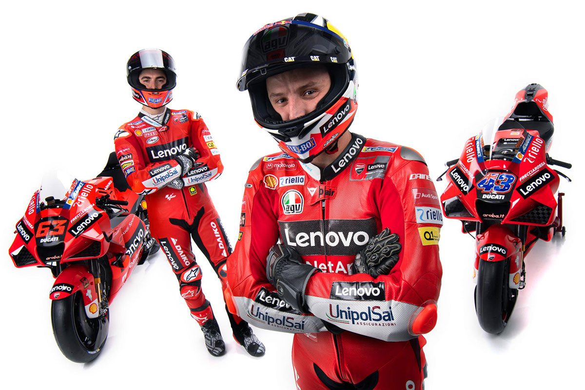 ชื่อใหม่ ลายใหม่ สปอนเซอร์ใหม่ นักแข่งใหม่ กับการเปิดตัวออนไลน์ของอีกหนึ่งทีมสุดแรง “Ducati Lenovo Team” นำโดยการเปิดผ้าคลุมจาก Claudio Domenicali, CEO บริษัท Ducati Motor Holding เผยให้เห็นโฉมใหม่ของรถแข่ง Desmosedici GP พร้อม 2 นักบิดตัวแรงจากทีมรองของดูคาติ “Pramac Racing” ในฤดูกาลที่แล้ว #43 Jack Miller และ #63 Francesco “Pecco Bagnaia”
